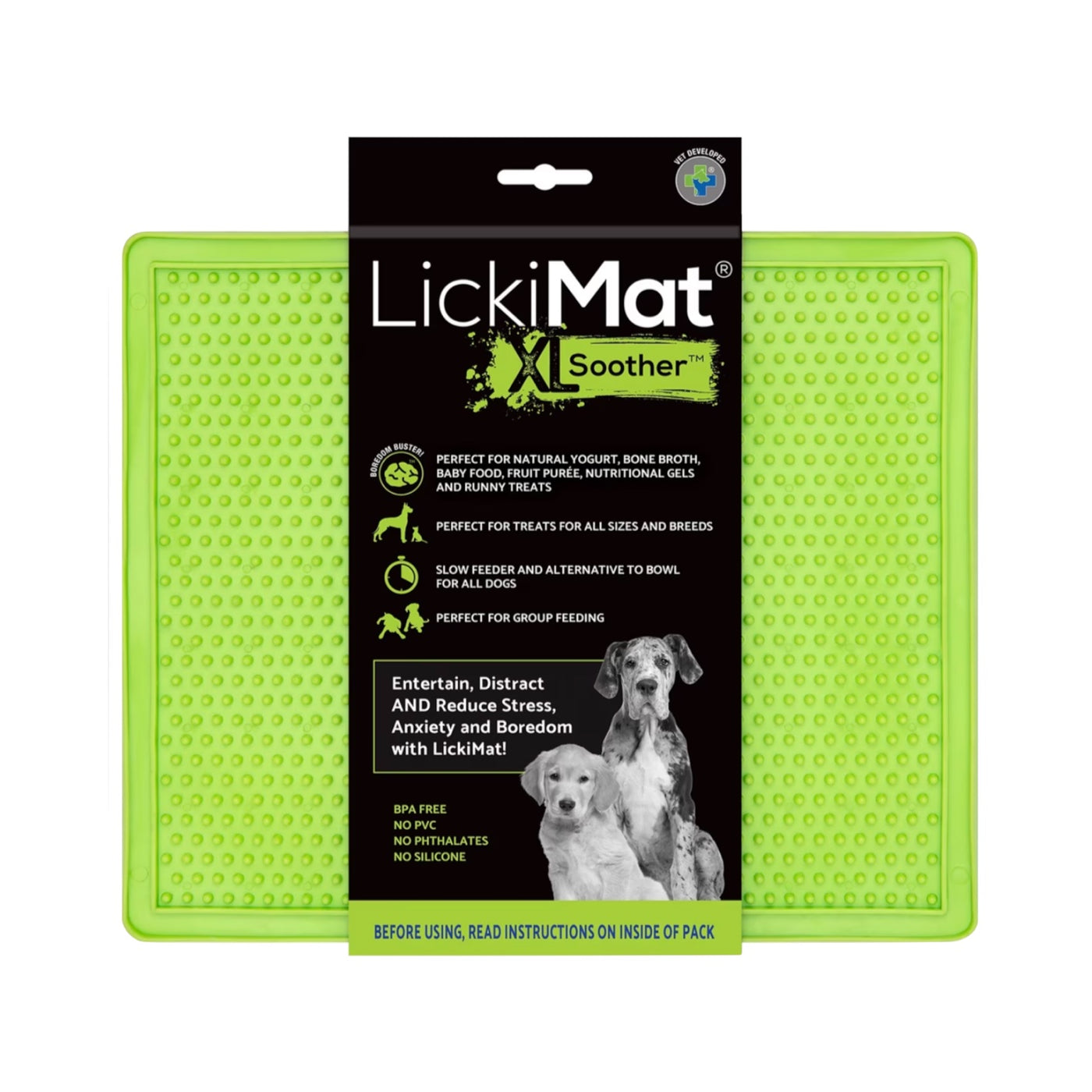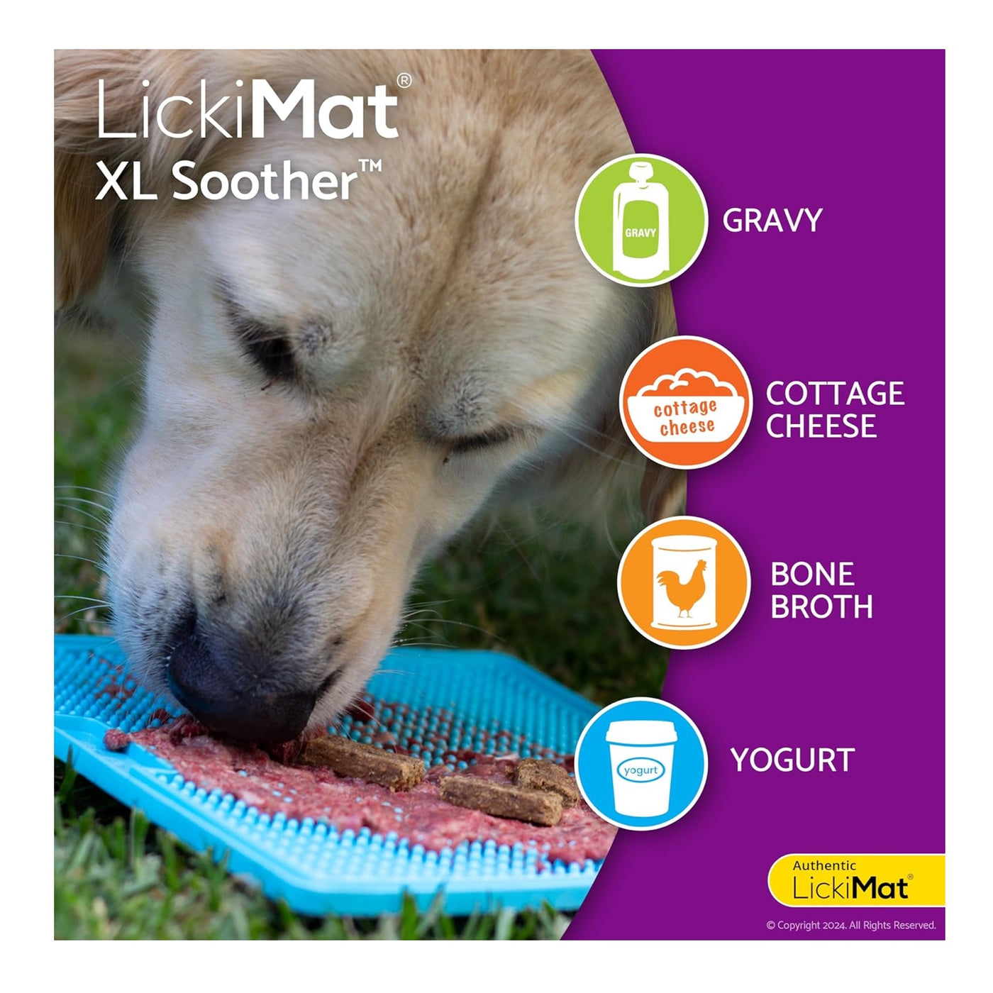 {"id":9964568052002,"title":"LickiMat Soother Non-Skid Thermoplastic Rubber Dog Feeding Mat X-Large","handle":"lickimat-soother-x-large","description":"\u003cp\u003e\u003cmeta charset=\"utf-8\"\u003e\u003cspan\u003eLickiMat XL Soother dog feeder is the perfect solution for pet parents looking to relieve their furry friend’s anxiety and provide a soft food feeder. The soft rubber nubs are designed to stimulate your pup’s tongue and encourage repetitive licking, which can release endorphins and promote relaxation. This extra-large size is ideal for larger pups and can even be used as a bowl replacement for mealtime. This bowl can hold a variety of foods and liquids, promoting slower eating no matter what your pet is enjoying.\u003c\/span\u003e\u003cspan\u003e\u003c\/span\u003e\u003c\/p\u003e\n\u003cul\u003e\n\u003cli\u003e\u003cspan\u003eThe heavy-duty LickiMat nubs hold food and liquids, extending mealtime and promoting slower eating\u003c\/span\u003e\u003c\/li\u003e\n\u003cli\u003e\u003cspan\u003eThe soft rubber structures stimulate your dog's tongue and can help release endorphins for a calming effect\u003c\/span\u003e\u003c\/li\u003e\n\u003cli\u003e\u003cspan\u003eWorks with a variety of foods and treats, including frozen treats, smoothies, wet food, and dog-safe baby food\u003c\/span\u003e\u003c\/li\u003e\n\u003cli\u003e\u003cspan\u003eFreezer-friendly, microwave-safe and free from BPAs, PVCs, phthalates, or silicone\u003c\/span\u003e\u003c\/li\u003e\n\u003c\/ul\u003e\n\u003cp\u003e\u003cspan\u003e\u003cspan style=\"text-decoration: underline;\"\u003eSizing\u003c\/span\u003e:\u003cbr\u003e11.8 x 11.4 x 0.4 inches\u003c\/span\u003e\u003c\/p\u003e","published_at":"2025-12-29T17:17:46-08:00","created_at":"2025-12-09T09:17:02-08:00","vendor":"LickiMat","type":"Bowls \u0026 Feeders","tags":["Bowls","Dog","Feeders \u0026 Waterers","Feeding","Feeding Accessories","Feeding Acessories"],"price":1699,"price_min":1699,"price_max":1699,"available":false,"price_varies":false,"compare_at_price":null,"compare_at_price_min":0,"compare_at_price_max":0,"compare_at_price_varies":false,"variants":[{"id":50676691894562,"title":"Lime Green","option1":"Lime Green","option2":null,"option3":null,"sku":"210000009410","requires_shipping":true,"taxable":true,"featured_image":null,"available":false,"name":"LickiMat Soother Non-Skid Thermoplastic Rubber Dog Feeding Mat X-Large - Lime Green","public_title":"Lime Green","options":["Lime Green"],"price":1699,"weight":198,"compare_at_price":null,"inventory_quantity":0,"inventory_management":"shopify","inventory_policy":"deny","barcode":"9349785005260","requires_selling_plan":false,"selling_plan_allocations":[]},{"id":50730495770914,"title":"Orange","option1":"Orange","option2":null,"option3":null,"sku":"210000008754","requires_shipping":true,"taxable":true,"featured_image":null,"available":false,"name":"LickiMat Soother Non-Skid Thermoplastic Rubber Dog Feeding Mat X-Large - Orange","public_title":"Orange","options":["Orange"],"price":1699,"weight":198,"compare_at_price":null,"inventory_quantity":0,"inventory_management":"shopify","inventory_policy":"deny","barcode":"9349785005277","requires_selling_plan":false,"selling_plan_allocations":[]},{"id":50730495803682,"title":"Turquoise","option1":"Turquoise","option2":null,"option3":null,"sku":"210000008755","requires_shipping":true,"taxable":true,"featured_image":null,"available":false,"name":"LickiMat Soother Non-Skid Thermoplastic Rubber Dog Feeding Mat X-Large - Turquoise","public_title":"Turquoise","options":["Turquoise"],"price":1699,"weight":198,"compare_at_price":null,"inventory_quantity":0,"inventory_management":"shopify","inventory_policy":"deny","barcode":"9349785005307","requires_selling_plan":false,"selling_plan_allocations":[]}],"images":["\/\/furlys.com\/cdn\/shop\/files\/LIckiMat_SootherXL_Turquoise.jpg?v=1767057315","\/\/furlys.com\/cdn\/shop\/files\/LIckiMat_SootherXL_Green.jpg?v=1767057315","\/\/furlys.com\/cdn\/shop\/files\/LIckiMat_SootherXL_array.jpg?v=1767057315","\/\/furlys.com\/cdn\/shop\/files\/LIckiMat_SootherXL_2.jpg?v=1767057316","\/\/furlys.com\/cdn\/shop\/files\/LIckiMat_SootherXL_1.jpg?v=1767057315"],"featured_image":"\/\/furlys.com\/cdn\/shop\/files\/LIckiMat_SootherXL_Turquoise.jpg?v=1767057315","options":["Color"],"media":[{"alt":null,"id":53896800469282,"position":1,"preview_image":{"aspect_ratio":1.0,"height":1414,"width":1414,"src":"\/\/furlys.com\/cdn\/shop\/files\/LIckiMat_SootherXL_Turquoise.jpg?v=1767057315"},"aspect_ratio":1.0,"height":1414,"media_type":"image","src":"\/\/furlys.com\/cdn\/shop\/files\/LIckiMat_SootherXL_Turquoise.jpg?v=1767057315","width":1414},{"alt":null,"id":53896800502050,"position":2,"preview_image":{"aspect_ratio":1.0,"height":1414,"width":1414,"src":"\/\/furlys.com\/cdn\/shop\/files\/LIckiMat_SootherXL_Green.jpg?v=1767057315"},"aspect_ratio":1.0,"height":1414,"media_type":"image","src":"\/\/furlys.com\/cdn\/shop\/files\/LIckiMat_SootherXL_Green.jpg?v=1767057315","width":1414},{"alt":null,"id":53896800534818,"position":3,"preview_image":{"aspect_ratio":1.0,"height":1414,"width":1414,"src":"\/\/furlys.com\/cdn\/shop\/files\/LIckiMat_SootherXL_array.jpg?v=1767057315"},"aspect_ratio":1.0,"height":1414,"media_type":"image","src":"\/\/furlys.com\/cdn\/shop\/files\/LIckiMat_SootherXL_array.jpg?v=1767057315","width":1414},{"alt":null,"id":53896800567586,"position":4,"preview_image":{"aspect_ratio":1.0,"height":1414,"width":1414,"src":"\/\/furlys.com\/cdn\/shop\/files\/LIckiMat_SootherXL_2.jpg?v=1767057316"},"aspect_ratio":1.0,"height":1414,"media_type":"image","src":"\/\/furlys.com\/cdn\/shop\/files\/LIckiMat_SootherXL_2.jpg?v=1767057316","width":1414},{"alt":null,"id":53896800600354,"position":5,"preview_image":{"aspect_ratio":1.0,"height":1414,"width":1414,"src":"\/\/furlys.com\/cdn\/shop\/files\/LIckiMat_SootherXL_1.jpg?v=1767057315"},"aspect_ratio":1.0,"height":1414,"media_type":"image","src":"\/\/furlys.com\/cdn\/shop\/files\/LIckiMat_SootherXL_1.jpg?v=176