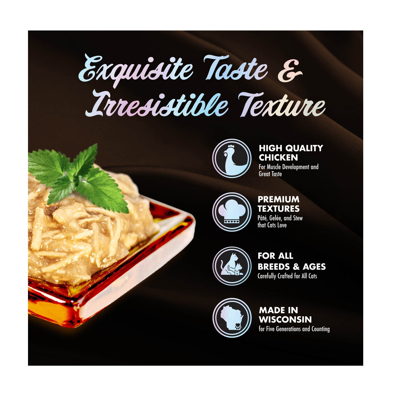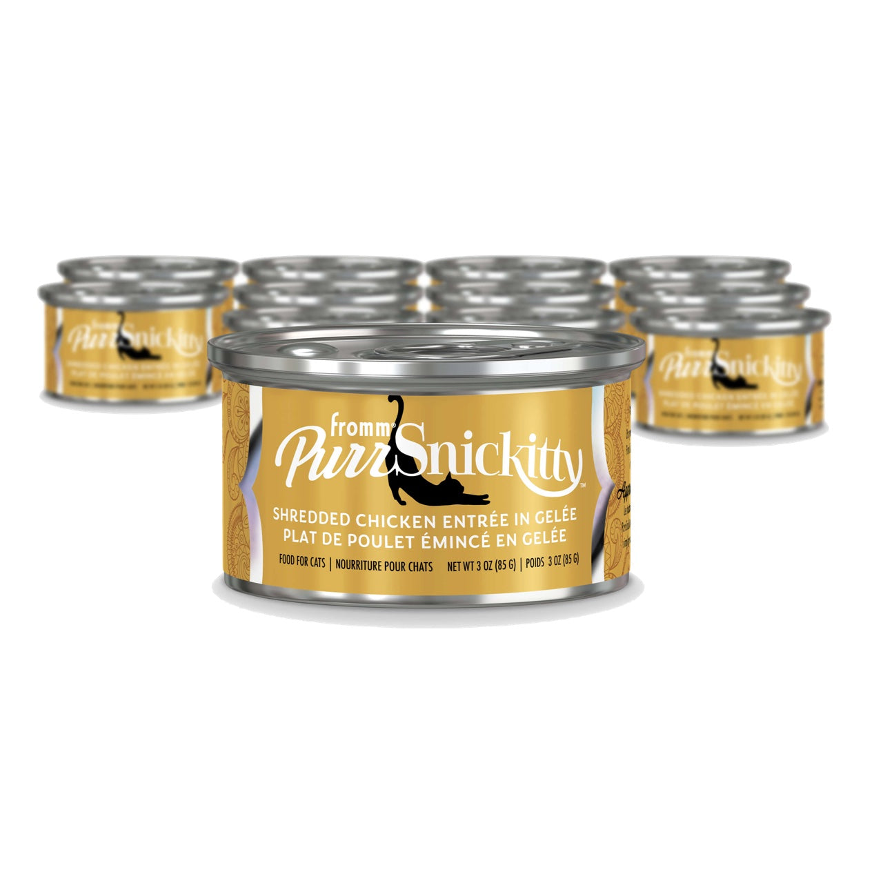 Introducing delicately delicious & enticing wet entrees - new premium tastes and textures make Fromm's PurrSnickitty irresistible - ¬ even for the pickiest of cats. Fromm's PurrSnickitty Shredded Chicken Entree is hearty shredded chicken suspended in a flavorful gelee made with chicken and turkey broth.