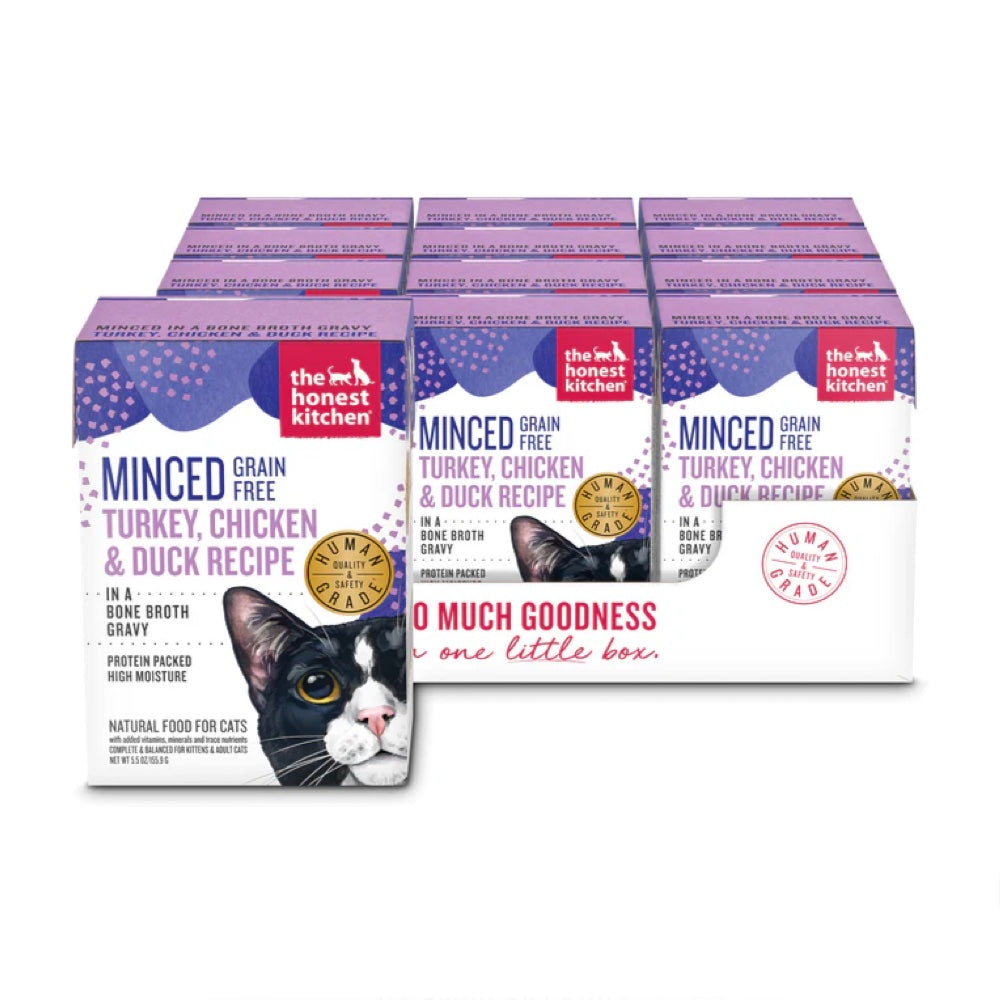{"id":9882134839586,"title":"The Honest Kitchen Minced Turkey, Chicken \u0026 Duck in Bone Broth Gravy","handle":"honest-kitchen-minced-turkey-chicken-duck","description":"\u003cp\u003eContains delicious, chunky, minced caged free turkey, chicken and duck simmered in savory gravy. This healthy wet food is made with 100% human grade ingredients and is free of fillers. Meaning it checks all your human grade, quality \u0026amp; nutrition boxes, and it checks all your cat's taste and texture boxes.\u003c\/p\u003e\n\u003cul\u003e\n\u003cli\u003eReal Protein First: Made with thoughtfully sourced, human grade proteins\u003c\/li\u003e\n\u003cli\u003eVariety of Tastes \u0026amp; Textures: chunky, brothy texture\u003c\/li\u003e\n\u003cli\u003eNo gums or carageenens, no meat meals, no GMO ingredients, no corn, wheat or soy\u003c\/li\u003e\n\u003cli\u003eProtein packed \u0026amp; high moisture\u003c\/li\u003e\n\u003c\/ul\u003e\n\u003cp\u003e\u003cspan style=\"text-decoration: underline;\"\u003eIngredients\u003c\/span\u003e:\u003cbr\u003e\u003cmeta charset=\"utf-8\"\u003e\u003cspan\u003eTurkey broth, turkey, chicken, duck, pumpkin, carrots, blueberries, cranberries, natural turkey flavor, agar-agar, dandelion greens, calcium carbonate, potassium chloride, tricalcium phosphate, magnesium proteinate, choline chloride, vitamins [vitamin E supplement, vitamin A supplement, niacin supplement, calcium pantothenate (vitamin B5), thiamine mononitrate (vitamin B1), riboflavin (vitamin B2), pyridoxine hydrochloride (vitamin B6), folic acid, biotin (vitamin B7), vitamin B12 supplement, vitamin D3 supplement], taurine, minerals [copper proteinate, iron proteinate, manganese proteinate, potassium iodide, zinc proteinate, sodium selenite], salmon oil, yucca schidigera extract, turmeric.\u003c\/span\u003e\u003cbr\u003e\u003c\/p\u003e\n\u003cp\u003e\u003cspan style=\"text-decoration: underline;\"\u003eGuaranteed Analysis\u003c\/span\u003e:\u003cbr\u003eProtein (max) 10%\u003cbr\u003eFat (max) 5.5%\u003cbr\u003eFiber (min) 1%\u003cbr\u003eMoisture (min) 82%\u003cbr\u003e\u003cbr\u003e\u003cspan style=\"text-decoration: underline;\"\u003eCaloric Content\u003c\/span\u003e:\u003cbr\u003e167 kcal\/ 5.5oz box\u003c\/p\u003e","published_at":"2025-11-08T14:03:08-08:00","created_at":"2025-10-18T10:06:35-07:00","vendor":"The Honest Kitchen","type":"Cat Food","tags":["Canned Food cat","Cat","Cat food","cat wet","Food \u0026 Treats cat","Food cat","Foods \u0026 Treats cat","Wet Food cat"],"price":329,"price_min":329,"price_max":3948,"available":true,"price_varies":true,"compare_at_price":null,"compare_at_price_min":0,"compare_at_price_max":0,"compare_at_price_varies":false,"variants":[{"id":50439114653986,"title":"5.5oz Box (Single)","option1":"5.5oz Box (Single)","option2":null,"option3":null,"sku":"210000003575","requires_shipping":true,"taxable":true,"featured_image":{"id":61973852389666,"product_id":9882134839586,"position":1,"created_at":"2025-10-18T10:06:35-07:00","updated_at":"2025-10-18T10:06:35-07:00","alt":null,"width":1140,"height":1140,"src":"\/\/furlys.com\/cdn\/shop\/files\/ua99opu6ec6oonfo7hdg.jpg?v=1760807195","variant_ids":[50439114653986]},"available":false,"name":"The Honest Kitchen Minced Turkey, Chicken \u0026 Duck in Bone Broth Gravy - 5.5oz Box (Single)","public_title":"5.5oz Box (Single)","options":["5.5oz Box (Single)"],"price":329,"weight":0,"compare_at_price":null,"inventory_quantity":0,"inventory_management":"shopify","inventory_policy":"deny","barcode":"850012047841","featured_media":{"alt":null,"id":53015891706146,"position":1,"preview_image":{"aspect_ratio":1.0,"height":1140,"width":1140,"src":"\/\/furlys.com\/cdn\/shop\/files\/ua99opu6ec6oonfo7hdg.jpg?v=1760807195"}},"requires_selling_plan":false,"selling_plan_allocations":[]},{"id":50560469238050,"title":"5.5oz Box (Case of 12)","option1":"5.5oz Box (Case of 12)","option2":null,"option3":null,"sku":"210000003576","requires_shipping":true,"taxable":true,"featured_image":null,"available":true,"name":"The Honest Kitchen Minced Turkey, Chicken \u0026 Duck in Bone Broth Gravy - 5.5oz Box (Case of 12)","public_title":"5.5oz Box (Case of 12)","options":["5.5oz Box (Case of 12)"],"price":3948,"weight":1871,"compare_at_price":null,"inventory_quantity":1,"inventory_management":"shopify","inventory_policy":"deny","barcode":"850027768229","requires_selling_plan":false,"selling_plan_allocations":[]}],"images":["\/\/furlys.com\/cdn\/shop\/files\/ua99opu6ec6oonfo7hdg.jpg?v=1760807195","\/\/furlys.com\/cdn\/shop\/files\/THK_Minced_TurkeyDuck_Case.jpg?v=1762639203","\/\/furlys.com\/cdn\/shop\/files\/THK_Minced_TurkeyDuck4.jpg?v=1762639203","\/\/furlys.com\/cdn\/shop\/files\/THK_Minced_TurkeyDuck1.jpg?v=1762639203","\/\/furlys.com\/cdn\/shop\/files\/THK_Minced_TurkeyDuck2.jpg?v=1762639203","\/\/furlys.com\/cdn\/shop\/files\/THK_Minced_TurkeyDuck3.jpg?v=1762639203"],"featured_image":"\/\/furlys.com\/cdn\/shop\/files\/ua99opu6ec6oonfo7hdg.jpg?v=1760807195","options":["Quantity"],"media":[{"alt":null,"id":53015891706146,"position":1,"preview_image":{"aspect_ratio":1.0,"height":1140,"width":1140,"src":"\/\/furlys.com\/cdn\/shop\/files\/ua99opu6ec6oonfo7hdg.jpg?v=1760807195"},"aspect_ratio":1.0,"height":1140,"media_type":"image","src":"\/\/furlys.com\/cdn\/shop\/files\/ua99opu6ec6oonfo7hdg.jpg?v=1760807195","width":1140},{"alt":null,"id":53381901418786,"position":2,"preview_image":{"aspect_ratio":1.0,"height":1000,"width":1000,"src":"\/\/furlys.com\/cdn\/shop\/files\/THK_Minced_TurkeyDuck_Case.jpg?v=1762639203"},"aspect_ratio":1.0,"height":1000,"media_type":"image","src":"\/\/furlys.com\/cdn\/shop\/files\/THK_Minced_TurkeyDuck_Case.jpg?v=1762639203","width":1000},{"alt":null,"id":53381901484322,"position":3,"preview_image":{"aspect_ratio":1.0,"height":1000,"width":1000,"src":"\/\/furlys.com\/cdn\/shop\/files\/THK_Minced_TurkeyDuck4.jpg?v=1762639203"},"aspect_ratio":1.0,"height":1000,"media_type":"image","src":"\/\/furlys.com\/cdn\/shop\/files\/THK_Minced_TurkeyDuck4.j