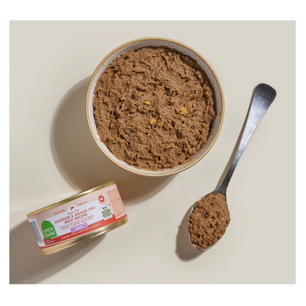 {"id":9999863709986,"title":"Open Farm Grain Free Chicken \u0026 Grass-Fed Beef Pate Wet Cat Food","handle":"open-farm-grain-free-chicken-grass-fed-beef-pate-wet-cat-food","description":"\u003cp\u003e\u003cmeta charset=\"utf-8\"\u003e\u003cspan\u003eThis velvety smooth pate is crafted with a protein-packed blend of pasture-raised, grass-fed beef, humanely-raised chicken, and chicken liver. Moisture-rich with broth and finished with non-GMO pumpkin, Open Farm's pates can be served as a complete \u0026amp; balanced meal or mixed in to your cat's bowl at mealtime to maximize moisture and nutrition.\u003cbr\u003e\u003c\/span\u003e\u003c\/p\u003e\n\u003cul\u003e\n\u003cli\u003e\u003cspan\u003eHumanely-raised chicken and beef are the first two ingredients\u003c\/span\u003e\u003c\/li\u003e\n\u003cli\u003e\u003cspan\u003eIncludes chicken broth and chicken liver\u003c\/span\u003e\u003c\/li\u003e\n\u003cli\u003e\u003cspan\u003eDelicious pate texture\u003c\/span\u003e\u003c\/li\u003e\n\u003cli\u003e\u003cspan\u003e100% traceable ingredients\u003c\/span\u003e\u003c\/li\u003e\n\u003cli\u003e\u003cspan\u003eGrain-free and legume-free\u003c\/span\u003e\u003c\/li\u003e\n\u003cli\u003e\u003cspan\u003eNo carrageenan, corn or soy\u003c\/span\u003e\u003c\/li\u003e\n\u003c\/ul\u003e\n\u003cp\u003e\u003cspan\u003e\u003cspan style=\"text-decoration: underline;\"\u003eIngredients\u003c\/span\u003e:\u003cbr\u003e\u003cmeta charset=\"utf-8\"\u003eChicken, Chicken Broth, Humanely-Raised Beef, Chicken Livers, Tapioca, Pumpkin, Natural Flavor, Agar Agar, Potassium Chloride, Magnesium Sulfate, Choline Chloride, DL-Methionine, Salt, Taurine, Thiamine Mononitrate, Vitamin E Supplement, Niacin Supplement, Vitamin A Supplement, Pantothenic Acid, Pyridoxine Hydrochloride, Riboflavin, Biotin, Vitamin B12 Supplement, Folic Acid, Vitamin D3 Supplement, Zinc Amino Acid Chelate, Iron Amino Acid Chelate, Copper Sulfate, Manganese Amino Acid Chelate, Sodium Selenite, Calcium Iodate\u003cbr\u003e\u003cbr\u003e\u003c\/span\u003e\u003cspan style=\"text-decoration: underline;\"\u003eGuaranteed Analysis\u003c\/span\u003e\u003cspan style=\"font-family: -apple-system, BlinkMacSystemFont, 'San Francisco', 'Segoe UI', Roboto, 'Helvetica Neue', sans-serif; font-size: 0.875rem;\"\u003e:\u003cbr\u003e\u003c\/span\u003e\u003cspan\u003eCrude Protein (min) 8.5%\u003cbr\u003eCrude Fat (min) 7%\u003cbr\u003eCrude Fiber (max) 1%\u003cbr\u003eMoisture (max) 78%\u003c\/span\u003e\u003c\/p\u003e\n\u003cp\u003e\u003cspan\u003e\u003cspan style=\"text-decoration: underline;\"\u003eCaloric Content\u003c\/span\u003e:\u003cbr\u003e92 kcal\/ 2.8oz can\u003cbr\u003e174 kcal\/ 5.3oz can\u003c\/span\u003e\u003c\/p\u003e","published_at":"2026-01-19T14:33:12-08:00","created_at":"2026-01-19T14:22:36-08:00","vendor":"Open Farm","type":"Cat Food","tags":["Canned Food cat","Cat","Cat food","cat wet","Food \u0026 Treats cat","Food cat","Foods \u0026 Treats cat","Grain Free cat","pate","Treats cat","Wet Food cat"],"price":199,"price_min":199,"price_max":3499,"available":true,"price_varies":true,"compare_at_price":null,"compare_at_price_min":0,"compare_at_price_max":0,"compare_at_price_varies":false,"variants":[{"id":50820127195426,"title":"2.8oz Can (Single)","option1":"2.8oz Can (Single)","option2":null,"option3":null,"sku":"210000014301","requires_shipping":true,"taxable":true,"featured_image":null,"available":false,"name":"Open Farm Grain Free Chicken \u0026 Grass-Fed Beef Pate Wet Cat Food - 2.8oz Can (Single)","public_title":"2.8oz Can (Single)","options":["2.8oz Can (Single)"],"price":199,"weight":79,"compare_at_price":null,"inventory_quantity":0,"inventory_management":"shopify","inventory_policy":"deny","barcode":"683547120877","requires_selling_plan":false,"selling_plan_allocations":[{"price_adjustments":[{"position":1,"price":189}],"price":189,"compare_at_price":199,"per_delivery_price":189,"selling_plan_id":9704800546,"selling_plan_group_id":"be5676770f7a2a402f39044871b9ae3b86c22e15"},{"price_adjustments":[{"position":1,"price":189}],"price":189,"compare_at_price":199,"per_delivery_price":189,"selling_plan_id":9704833314,"selling_plan_group_id":"be5676770f7a2a402f39044871b9ae3b86c22e15"},{"price_adjustments":[{"position":1,"price":189}],"price":189,"compare_at_price":199,"per_delivery_price":189,"selling_plan_id":9704866082,"selling_plan_group_id":"be5676770f7a2a402f39044871b9ae3b86c22e15"},{"price_adjustments":[{"position":1,"price":189}],"price":189,"compare_at_price":199,"per_delivery_price":189,"selling_plan_id":9704898850,"selling_plan_group_id":"be5676770f7a2a402f39044871b9ae3b86c22e15"},{"price_adjustments":[{"position":1,"price":189}],"price":189,"compare_at_price":199,"per_delivery_price":189,"selling_plan_id":9704931618,"selling_plan_group_id":"be5676770f7a2a402f39044871b9ae3b86c22e15"},{"price_adjustments":[{"position":1,"price":189}],"price":189,"compare_at_price":199,"per_delivery_price":189,"selling_plan_id":9704964386,"selling_plan_group_id":"be5676770f7a2a402f39044871b9ae3b86c22e15"},{"price_adjustments":[{"position":1,"price":189}],"price":189,"compare_at_price":199,"per_delivery_price":189,"selling_plan_id":9704997154,"selling_plan_group_id":"be5676770f7a2a402f39044871b9ae3b86c22e15"},{"price_adjustments":[{"position":1,"price":189}],"price":189,"compare_at_price":199,"per_delivery_price":189,"selling_plan_id":9705029922,"selling_plan_group_id":"be5676770f7a2a402f39044871b9ae3b86c22e15"},{"price_adjustments":[{"position":1,"price":189}],"price":189,"compare_at_price":199,"per_delivery_price":189,"selling_plan_id":9705062690,"selling_plan_group_id":"be5676770f7a2a402f39044871b9ae3b86c22e15"},{"price_adjustments":[{"position":1,"price":189}],"price":189,"compare_at_price":199,"per_delivery_price":189,"selling_plan_id":9705095458,"selling_plan_group_id":"be5676770f7a2a402f39044871b9ae3b86c22e15"},{"price_adjustments":[{"position":1,"price":189}],"price":189,"compare_at_price":199,"per_delivery_price":189,"selling_plan_id":9705128226,"selling_