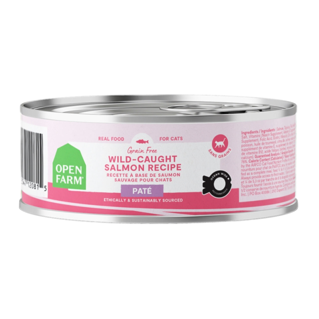 {"id":9999865315618,"title":"Open Farm Grain Free Chicken \u0026 Salmon Pate Wet Cat Food","handle":"open-farm-grain-free-chicken-salmon-pate-wet-cat-food","description":"\u003cp\u003e\u003cmeta charset=\"utf-8\"\u003e\u003cspan\u003eThis velvety smooth pate is crafted with a protein-packed blend of Ocean Wise recommended wild-caught salmon, humanely-raised chicken, and chicken liver. Moisture-rich with broth and finished with non-GMO pumpkin, Open Farm's pates can be served as a complete \u0026amp; balanced meal or mixed in to your cat's bowl at mealtime to maximize moisture and nutrition.\u003cbr\u003e\u003c\/span\u003e\u003c\/p\u003e\n\u003cul\u003e\n\u003cli\u003e\u003cspan\u003eHumanely-raised chicken and wild-caught salmon are the first two ingredients\u003c\/span\u003e\u003c\/li\u003e\n\u003cli\u003e\u003cspan\u003eIncludes chicken broth and chicken liver\u003c\/span\u003e\u003c\/li\u003e\n\u003cli\u003e\u003cspan\u003eDelicious pate texture\u003c\/span\u003e\u003c\/li\u003e\n\u003cli\u003e\u003cspan\u003e100% traceable ingredients\u003c\/span\u003e\u003c\/li\u003e\n\u003cli\u003e\u003cspan\u003eGrain-free and legume-free\u003c\/span\u003e\u003c\/li\u003e\n\u003cli\u003e\u003cspan\u003eNo carrageenan, corn or soy\u003c\/span\u003e\u003c\/li\u003e\n\u003c\/ul\u003e\n\u003cp\u003e\u003cspan\u003e\u003cspan style=\"text-decoration: underline;\"\u003eIngredients\u003c\/span\u003e:\u003cbr\u003e\u003cmeta charset=\"utf-8\"\u003eChicken, Chicken Broth, Wild-caught Pacific Salmon, Chicken Livers, Tapioca, Pumpkin, Natural Flavor, Agar Agar, Potassium Chloride, Choline Chloride, Taurine, Salt, Thiamine Mononitrate, Vitamin E Supplement, Niacin Supplement, Vitamin A Supplement, Pantothenic Acid, Pyridoxine Hydrochloride, Riboflavin Supplement, Biotin, Vitamin B12 Supplement, Folic Acid, Vitamin D3 Supplement, Zinc Amino Acid Chelate, Iron Amino Acid Chelate, Copper Sulfate, Manganese Amino Acid Chelate, Sodium Selenite, Calcium Iodate\u003cbr\u003e\u003cbr\u003e\u003c\/span\u003e\u003cspan style=\"text-decoration: underline;\"\u003eGuaranteed Analysis\u003c\/span\u003e\u003cspan style=\"font-family: -apple-system, BlinkMacSystemFont, 'San Francisco', 'Segoe UI', Roboto, 'Helvetica Neue', sans-serif; font-size: 0.875rem;\"\u003e:\u003cbr\u003e\u003c\/span\u003e\u003cspan\u003eCrude Protein (min) 8.5%\u003cbr\u003eCrude Fat (min) 7.5%\u003cbr\u003eCrude Fiber (max) 1%\u003cbr\u003eMoisture (max) 78%\u003c\/span\u003e\u003c\/p\u003e\n\u003cp\u003e\u003cspan\u003e\u003cspan style=\"text-decoration: underline;\"\u003eCaloric Content\u003c\/span\u003e:\u003cbr\u003e92 kcal\/ 2.8oz can\u003cbr\u003e174 kcal\/ 5.3oz can\u003c\/span\u003e\u003c\/p\u003e","published_at":"2026-01-19T14:56:11-08:00","created_at":"2026-01-19T14:35:39-08:00","vendor":"Open Farm","type":"Cat Food","tags":["Canned Food cat","Cat","Cat food","cat wet","Food \u0026 Treats cat","Food cat","Foods \u0026 Treats cat","Grain Free cat","pate","Treats cat","Wet Food cat"],"price":199,"price_min":199,"price_max":3499,"available":true,"price_varies":true,"compare_at_price":null,"compare_at_price_min":0,"compare_at_price_max":0,"compare_at_price_varies":false,"variants":[{"id":50820135715106,"title":"2.8oz Can (Single)","option1":"2.8oz Can (Single)","option2":null,"option3":null,"sku":"210000014309","requires_shipping":true,"taxable":true,"featured_image":null,"available":true,"name":"Open Farm Grain Free Chicken \u0026 Salmon Pate Wet Cat Food - 2.8oz Can (Single)","public_title":"2.8oz Can (Single)","options":["2.8oz Can (Single)"],"price":199,"weight":79,"compare_at_price":null,"inventory_quantity":15,"inventory_management":"shopify","inventory_policy":"deny","barcode":"683547120853","requires_selling_plan":false,"selling_plan_allocations":[{"price_adjustments":[{"position":1,"price":189}],"price":189,"compare_at_price":199,"per_delivery_price":189,"selling_plan_id":9704800546,"selling_plan_group_id":"be5676770f7a2a402f39044871b9ae3b86c22e15"},{"price_adjustments":[{"position":1,"price":189}],"price":189,"compare_at_price":199,"per_delivery_price":189,"selling_plan_id":9704833314,"selling_plan_group_id":"be5676770f7a2a402f39044871b9ae3b86c22e15"},{"price_adjustments":[{"position":1,"price":189}],"price":189,"compare_at_price":199,"per_delivery_price":189,"selling_plan_id":9704866082,"selling_plan_group_id":"be5676770f7a2a402f39044871b9ae3b86c22e15"},{"price_adjustments":[{"position":1,"price":189}],"price":189,"compare_at_price":199,"per_delivery_price":189,"selling_plan_id":9704898850,"selling_plan_group_id":"be5676770f7a2a402f39044871b9ae3b86c22e15"},{"price_adjustments":[{"position":1,"price":189}],"price":189,"compare_at_price":199,"per_delivery_price":189,"selling_plan_id":9704931618,"selling_plan_group_id":"be5676770f7a2a402f39044871b9ae3b86c22e15"},{"price_adjustments":[{"position":1,"price":189}],"price":189,"compare_at_price":199,"per_delivery_price":189,"selling_plan_id":9704964386,"selling_plan_group_id":"be5676770f7a2a402f39044871b9ae3b86c22e15"},{"price_adjustments":[{"position":1,"price":189}],"price":189,"compare_at_price":199,"per_delivery_price":189,"selling_plan_id":9704997154,"selling_plan_group_id":"be5676770f7a2a402f39044871b9ae3b86c22e15"},{"price_adjustments":[{"position":1,"price":189}],"price":189,"compare_at_price":199,"per_delivery_price":189,"selling_plan_id":9705029922,"selling_plan_group_id":"be5676770f7a2a402f39044871b9ae3b86c22e15"},{"price_adjustments":[{"position":1,"price":189}],"price":189,"compare_at_price":199,"per_delivery_price":189,"selling_plan_id":9705062690,"selling_plan_group_id":"be5676770f7a2a402f39044871b9ae3b86c22e15"},{"price_adjustments":[{"position":1,"price":189}],"price":189,"compare_at_price":199,"per_delivery_price":189,"selling_plan_id":9705095458,"selling_plan_group_id":"be5676770f7a2a402f39044871b9ae3b86c22e15"},{"price_adjustments":[{"position":1,"price":189}],"price":189,"compare_at_price":199,"per_delivery_price":189,"selling_plan_id":9705128226,"selling_plan_group_id"