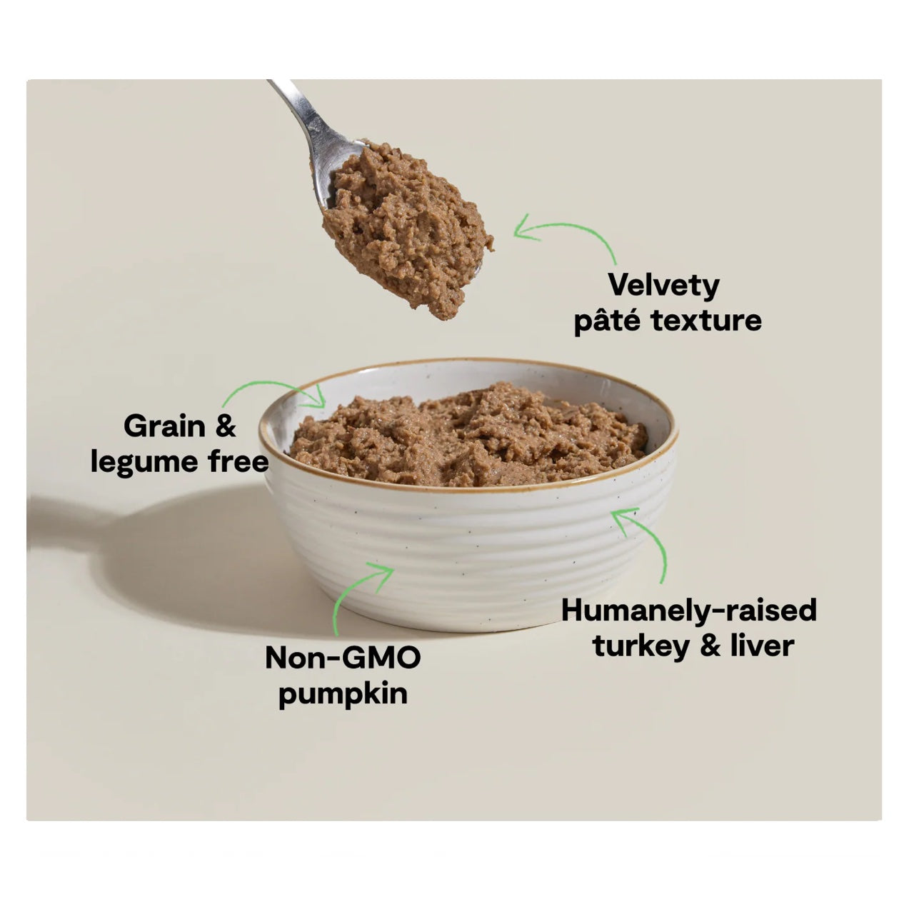 This velvety smooth pate is crafted with a protein-packed blend of humanely-raised turkey and turkey liver. Moisture-rich with broth and finished with non-GMO pumpkin, Open Farm's pates can be served as a complete & balanced meal or mixed in to your cat's bowl at mealtime to maximize moisture and nutrition.