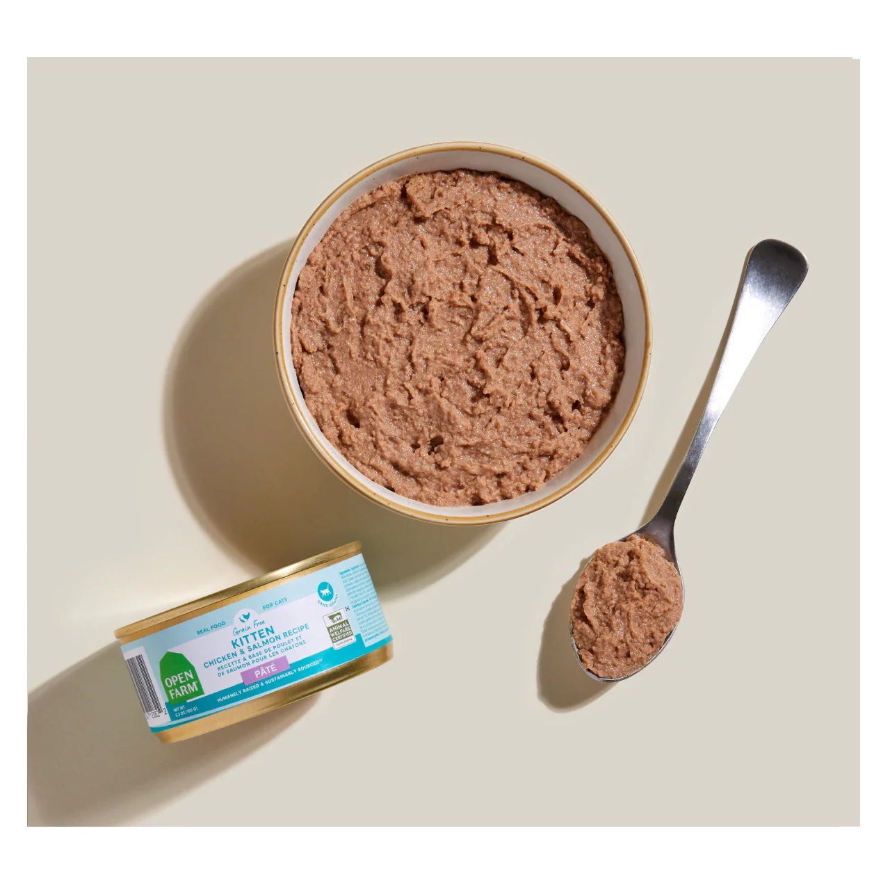 {"id":9999859384610,"title":"Open Farm Grain Free Kitten Chicken \u0026 Salmon Pate Wet Cat Food","handle":"open-farm-grain-free-kitten-chicken-salmon-pate-wet-cat-food","description":"\u003cp\u003e\u003cmeta charset=\"utf-8\"\u003e\u003cspan\u003eFormulated to give growing kittens the building blocks they need to thrive, this velvety smooth pate is crafted with a protein-packed blend of wild-caught salmon, humanely-raised chicken, and chicken liver. Finished with non-GMO veggies and rich in DHA to support healthy growth and development, Open Farm's kitten recipe can be served as a completed \u0026amp; balanced meal or mixed in with their meal to maximize nutrition.\u003cbr\u003e\u003cbr\u003e\u003c\/span\u003e\u003c\/p\u003e\n\u003cul\u003e\n\u003cli\u003e\u003cspan\u003eHumanely raised chicken as the first ingredient, with no added antibiotics or hormones\u003c\/span\u003e\u003c\/li\u003e\n\u003cli\u003e\u003cspan\u003eIncludes chicken broth, chicken liver \u0026amp; wild-caught Pacific salmon\u003c\/span\u003e\u003c\/li\u003e\n\u003cli\u003e\u003cspan\u003eDelicious pate texture\u003c\/span\u003e\u003c\/li\u003e\n\u003cli\u003e\u003cspan\u003e100% traceable ingredients\u003c\/span\u003e\u003c\/li\u003e\n\u003cli\u003e\u003cspan\u003eGrain-free and legume-free\u003c\/span\u003e\u003c\/li\u003e\n\u003cli\u003e\u003cspan\u003eNo carrageenan, corn or soy\u003c\/span\u003e\u003c\/li\u003e\n\u003c\/ul\u003e\n\u003cp\u003e\u003cspan\u003e\u003cspan style=\"text-decoration: underline;\"\u003eIngredients\u003c\/span\u003e:\u003cbr\u003e\u003cmeta charset=\"utf-8\"\u003eChicken, Chicken Broth, Wild-Caught Pacific Salmon, Chicken Livers, Tapioca, Pumpkin, Natural Flavor, Agar Agar, Potassium Chloride, Magnesium Sulfate, Choline Chloride, DL-Methionine, Salt, Salmon Oil, Taurine, Thiamine Mononitrate, Vitamin E Supplemennt, Niacin Supplement, Vitamin A Supplement, Pantothenic Acid, Pyridoxine Hydrochloride, Riboflavin Supplement, Biotin, Vitamin B12 Supplement, Folic Acid, Vitamin D3 Supplement, Zinc Amino Acid Chelate, Iron Amino Acid Chelate, Copper Sulfate, Manganese Amino Acid Chelate, Sodium Selenite, Calcium Iodate\u003cbr\u003e\u003c\/span\u003e\u003c\/p\u003e\n\u003cp\u003e\u003cspan\u003e\u003cspan style=\"text-decoration: underline;\"\u003eGuaranteed Analysis\u003c\/span\u003e:\u003cbr\u003eCrude Protein (min) 9%\u003cbr\u003eCrude Fat (min) 8%\u003cbr\u003eCrude Fiber (max) 1%\u003cbr\u003eMoisture (max) 78%\u003c\/span\u003e\u003c\/p\u003e\n\u003cp\u003e\u003cspan\u003e\u003cspan style=\"text-decoration: underline;\"\u003eCaloric Content\u003c\/span\u003e:\u003cbr\u003e102 kcal\/ 2.8oz can\u003cbr\u003e194 kcal\/ 5.3oz can\u003c\/span\u003e\u003c\/p\u003e","published_at":"2026-01-19T14:17:28-08:00","created_at":"2026-01-19T14:00:10-08:00","vendor":"Open Farm","type":"Cat Food","tags":["Canned Food cat","Cat","Cat food","cat wet","Food \u0026 Treats cat","Food cat","Foods \u0026 Treats cat","Grain Free cat","pate","Treats cat","Wet Food cat"],"price":199,"price_min":199,"price_max":3499,"available":true,"price_varies":true,"compare_at_price":null,"compare_at_price_min":0,"compare_at_price_max":0,"compare_at_price_varies":false,"variants":[{"id":50820115923234,"title":"2.8oz Can (Single)","option1":"2.8oz Can (Single)","option2":null,"option3":null,"sku":"210000014305","requires_shipping":true,"taxable":true,"featured_image":null,"available":true,"name":"Open Farm Grain Free Kitten Chicken \u0026 Salmon Pate Wet Cat Food - 2.8oz Can (Single)","public_title":"2.8oz Can (Single)","options":["2.8oz Can (Single)"],"price":199,"weight":79,"compare_at_price":null,"inventory_quantity":17,"inventory_management":"shopify","inventory_policy":"deny","barcode":"683547120891","requires_selling_plan":false,"selling_plan_allocations":[{"price_adjustments":[{"position":1,"price":189}],"price":189,"compare_at_price":199,"per_delivery_price":189,"selling_plan_id":9704800546,"selling_plan_group_id":"be5676770f7a2a402f39044871b9ae3b86c22e15"},{"price_adjustments":[{"position":1,"price":189}],"price":189,"compare_at_price":199,"per_delivery_price":189,"selling_plan_id":9704833314,"selling_plan_group_id":"be5676770f7a2a402f39044871b9ae3b86c22e15"},{"price_adjustments":[{"position":1,"price":189}],"price":189,"compare_at_price":199,"per_delivery_price":189,"selling_plan_id":9704866082,"selling_plan_group_id":"be5676770f7a2a402f39044871b9ae3b86c22e15"},{"price_adjustments":[{"position":1,"price":189}],"price":189,"compare_at_price":199,"per_delivery_price":189,"selling_plan_id":9704898850,"selling_plan_group_id":"be5676770f7a2a402f39044871b9ae3b86c22e15"},{"price_adjustments":[{"position":1,"price":189}],"price":189,"compare_at_price":199,"per_delivery_price":189,"selling_plan_id":9704931618,"selling_plan_group_id":"be5676770f7a2a402f39044871b9ae3b86c22e15"},{"price_adjustments":[{"position":1,"price":189}],"price":189,"compare_at_price":199,"per_delivery_price":189,"selling_plan_id":9704964386,"selling_plan_group_id":"be5676770f7a2a402f39044871b9ae3b86c22e15"},{"price_adjustments":[{"position":1,"price":189}],"price":189,"compare_at_price":199,"per_delivery_price":189,"selling_plan_id":9704997154,"selling_plan_group_id":"be5676770f7a2a402f39044871b9ae3b86c22e15"},{"price_adjustments":[{"position":1,"price":189}],"price":189,"compare_at_price":199,"per_delivery_price":189,"selling_plan_id":9705029922,"selling_plan_group_id":"be5676770f7a2a402f39044871b9ae3b86c22e15"},{"price_adjustments":[{"position":1,"price":189}],"price":189,"compare_at_price":199,"per_delivery_price":189,"selling_plan_id":9705062690,"selling_plan_group_id":"be5676770f7a2a402f39044871b9ae3b86c22e15"},{"price_adjustments":[{"position":1,"price":189}],"price":189,"compare_at_price":199,"per_delivery_price":189,"selling_plan_id":9705095458,"selling_plan_group_id":"be5676770f7a2a402f39044871b9ae3b86c22e15"},{"price_adjustments":[{"position":1,"price":189}],"price":189,"compare_at_price":199,"per_delivery_price":189,"selling_plan_id":9705128226,