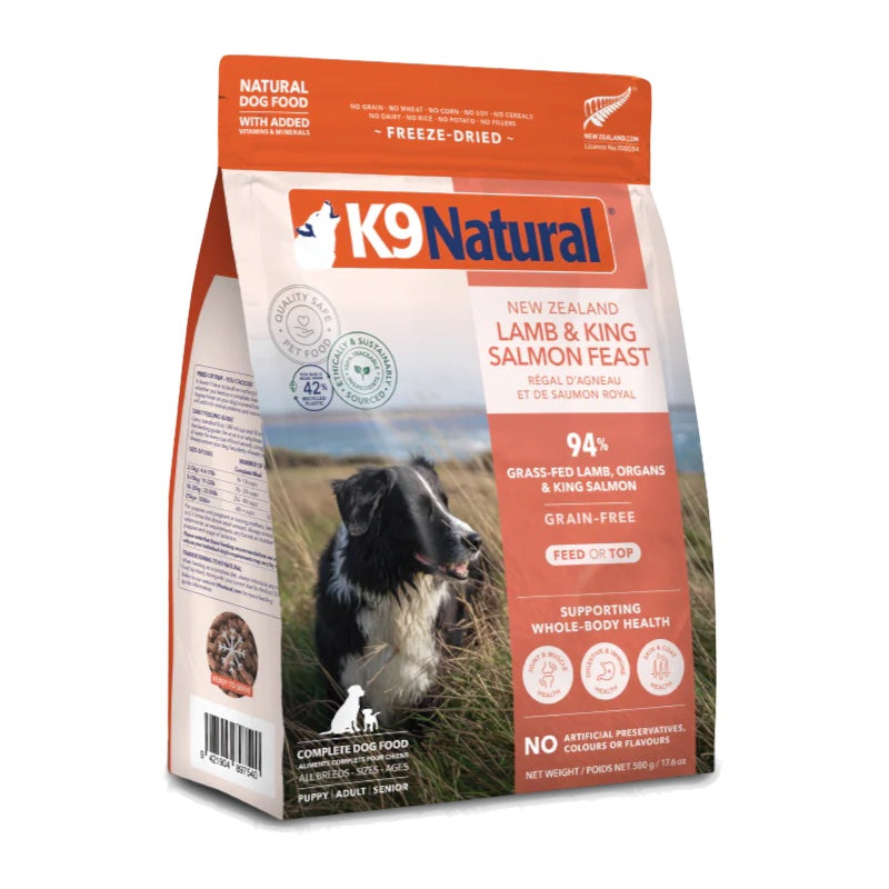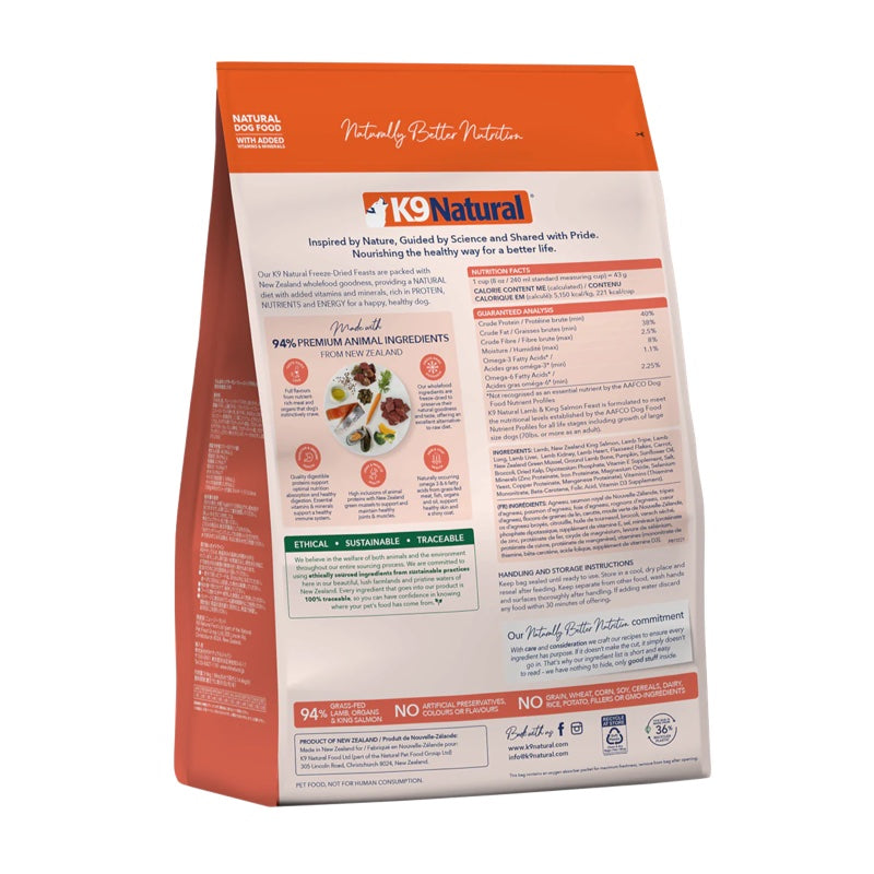{"id":9709298581794,"title":"K9 Natural Lamb \u0026 King Salmon Freeze-Dried Dog Food","handle":"k9-natural-freeze-dried-lamb-king-salmon-dog-food","description":"\u003cp\u003e\u003cmeta charset=\"utf-8\"\u003e\u003cspan\u003e\u003cmeta charset=\"utf-8\"\u003eK9 Natural 's complete and balanced Freeze-Dried New Zealand Lamb \u0026amp; King Salmon Feast contains 94% Grass-fed \u0026amp; Grass-finished Lamb \u0026amp; Organs, and Sustainably-caught King Salmon, with New Zealand Green Mussels, Flaxseed Flakes, Vegetables, Oils, Kelp, Vitamins, and Minerals in support of your dog's whole-body health.\u003c\/span\u003e\u003c\/p\u003e\n\u003cul\u003e\n\u003cli\u003eSupports Joint \u0026amp; Muscle Health\u003c\/li\u003e\n\u003cli\u003eSupports Digestive \u0026amp; Immune Health\u003c\/li\u003e\n\u003cli\u003eSupports Skin \u0026amp; Coat Health\u003c\/li\u003e\n\u003cli\u003eNo Grain, Wheat, Corn, Soy, Cereals, or Fillers\u003c\/li\u003e\n\u003cli\u003eNo Artificial Preservatives, Colors, or Flavors\u003c\/li\u003e\n\u003c\/ul\u003e\n\u003cp\u003e\u003cspan\u003e\u003cspan\u003e\u003cspan style=\"text-decoration: underline;\"\u003eIngredients\u003c\/span\u003e:\u003cbr\u003e\u003cmeta charset=\"utf-8\"\u003eLamb, New Zealand King Salmon, Lamb Tripe, Lamb Lung, Lamb Liver, Lamb Kidney, Lamb Heart, Flaxseed Flakes, Carrot, New Zealand Green Mussel, Ground Lamb Bone, Pumpkin, Sunflower Oil, Broccoli, Dried Kelp, Dipotassium Phosphate, Vitamin E Supplement, Salt, Minerals (Zinc Proteinate, Iron Proteinate, Magnesium Oxide, Selenium Yeast, Copper Proteinate, Manganese Proteinate), Vitamins (Thiamine Mononitrate, Beta-Carotene, Folic Acid, Vitamin D3 Supplement)\u003cbr\u003e\u003cmeta charset=\"utf-8\"\u003e \u003cbr\u003e\u003cspan style=\"text-decoration: underline;\"\u003eGuaranteed Analysis\u003c\/span\u003e:\u003cbr\u003eCrude Protein (min) 40%\u003cbr\u003eCrude Fat (min) 38%\u003cbr\u003eCrude Fiber (max) 2.5%\u003cbr\u003eMoisture (max) 8%\u003cbr\u003e\u003cbr\u003e\u003cspan style=\"text-decoration: underline;\"\u003eCaloric Content\u003c\/span\u003e:\u003cbr\u003e211 kcal\/ cup\u003c\/span\u003e\u003c\/span\u003e\u003c\/p\u003e","published_at":"2025-04-19T22:05:12-07:00","created_at":"2025-04-19T21:59:29-07:00","vendor":"K9 Natural","type":"Dog Food","tags":["Dog","Dog food","Food","Food \u0026 Treats","Freeze Dried Food"],"price":5299,"price_min":5299,"price_max":14999,"available":true,"price_varies":true,"compare_at_price":null,"compare_at_price_min":0,"compare_at_price_max":0,"compare_at_price_varies":false,"variants":[{"id":49855819350306,"title":"1.1lb","option1":"1.1lb","option2":null,"option3":null,"sku":"210000000847","requires_shipping":true,"taxable":true,"featured_image":{"id":60193360150818,"product_id":9709298581794,"position":1,"created_at":"2025-04-19T22:03:00-07:00","updated_at":"2025-08-08T00:14:21-07:00","alt":null,"width":800,"height":800,"src":"\/\/furlys.com\/cdn\/shop\/files\/K9_Natural_FreezeDried_Lamb_Salmon.jpg?v=1754637261","variant_ids":[49855819350306]},"available":true,"name":"K9 Natural Lamb \u0026 King Salmon Freeze-Dried Dog Food - 1.1lb","public_title":"1.1lb","options":["1.1lb"],"price":5299,"weight":499,"compare_at_price":null,"inventory_quantity":1,"inventory_management":"shopify","inventory_policy":"deny","barcode":"9421904518780","featured_media":{"alt":null,"id":51693322305826,"position":1,"preview_image":{"aspect_ratio":1.0,"height":800,"width":800,"src":"\/\/furlys.com\/cdn\/shop\/files\/K9_Natural_FreezeDried_Lamb_Salmon.jpg?v=1754637261"}},"requires_selling_plan":false,"selling_plan_allocations":[{"price_adjustments":[{"position":1,"price":5034}],"price":5034,"compare_at_price":5299,"per_delivery_price":5034,"selling_plan_id":9515729186,"selling_plan_group_id":"be5676770f7a2a402f39044871b9ae3b86c22e15"},{"price_adjustments":[{"position":1,"price":5034}],"price":5034,"compare_at_price":5299,"per_delivery_price":5034,"selling_plan_id":9515761954,"selling_plan_group_id":"be5676770f7a2a402f39044871b9ae3b86c22e15"},{"price_adjustments":[{"position":1,"price":5034}],"price":5034,"compare_at_price":5299,"per_delivery_price":5034,"selling_plan_id":9515794722,"selling_plan_group_id":"be5676770f7a2a402f39044871b9ae3b86c22e15"},{"price_adjustments":[{"position":1,"price":5034}],"price":5034,"compare_at_price":5299,"per_delivery_price":5034,"selling_plan_id":9515827490,"selling_plan_group_id":"be5676770f7a2a402f39044871b9ae3b86c22e15"},{"price_adjustments":[{"position":1,"price":5034}],"price":5034,"compare_at_price":5299,"per_delivery_price":5034,"selling_plan_id":9515860258,"selling_plan_group_id":"be5676770f7a2a402f39044871b9ae3b86c22e15"},{"price_adjustments":[{"position":1,"price":5034}],"price":5034,"compare_at_price":5299,"per_delivery_price":5034,"selling_plan_id":9515893026,"selling_plan_group_id":"be5676770f7a2a402f39044871b9ae3b86c22e15"},{"price_adjustments":[{"position":1,"price":5034}],"price":5034,"compare_at_price":5299,"per_delivery_price":5034,"selling_plan_id":9515925794,"selling_plan_group_id":"be5676770f7a2a402f39044871b9ae3b86c22e15"},{"price_adjustments":[{"position":1,"price":5034}],"price":5034,"compare_at_price":5299,"per_delivery_price":5034,"selling_plan_id":9515958562,"selling_plan_group_id":"be5676770f7a2a402f39044871b9ae3b86c22e15"},{"price_adjustments":[{"position":1,"price":5034}],"price":5034,"compare_at_price":5299,"per_delivery_price":5034,"selling_plan_id":9515991330,"selling_plan_group_id":"be5676770f7a2a402f39044871b9ae3b86c22e15"},{"price_adjustments":[{"position":1,"price":5034}],"price":5034,"compare_at_price":5299,"per_delivery_price":5034,"selling_plan_id":9516024098,"selling_plan_group_id":"be5676770f7a2a402f39044871b9ae3b86c22e15"},{"price_adjustments":[{"position":1,"price":5034}],"price":5034,"compare_at_price":5299,"per_delivery_price":5034,"selling_plan_id":9516056866,"selling_plan_group_id":"be5676770f7a2a402f39044871b9ae3b86c22e15"},{"price_adjustments":[{"position":1,"price":5034}],"price":5034,"compare_a