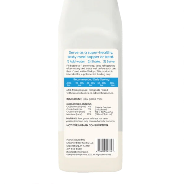 {"id":9833577578786,"title":"Shepherd Boy Farms Freeze-Dried Raw Goat Milk Classic 2oz","handle":"shepherd-boy-farms-freeze-dried-goat-milk","description":"\u003cp\u003eCrafted from pure milk sourced from pasture-fed goat, raised without antibiotics or added hormones. Shepherd Boy Farm's gentle freeze-drying process preserves the rich nutrients ad natural flavor of goat milk more effectively than traditional dehydration methods. Goat milk is an ideal nutritional supplement - it's packed with calcium, vitamins B6 \u0026amp; B12, vitamin A, and electrolytes to support bone strength, muscle health, and overall energy.\u003c\/p\u003e\n\u003cul\u003e\n\u003cli\u003eSuperior to dehydrated milk! Freeze-dried goat milk retains more of the natural vitamins, minerals \u0026amp; probiotics\u003c\/li\u003e\n\u003cli\u003eGreat nutritional supplement. Instant goat milk powder provides a highly digestible protein source ideal for sensitive stomachs\u003c\/li\u003e\n\u003cli\u003eNutrient-dense Re-hydrator \u0026amp; Topper: Simply mix with water to create a tasty, nutrient-rich liquid for hydration. Use it to moisten freeze-dried food or as a flavorful topper on kibble or wet for an extra boost of nutrition\u003c\/li\u003e\n\u003cli style=\"font-weight: bold;\"\u003e\u003cstrong\u003e1oz of freeze-dried goat's milk makes 8oz of goat's milk, providing a concentrated nutritional value!\u003c\/strong\u003e\u003c\/li\u003e\n\u003c\/ul\u003e\n\u003cp\u003e\u003cspan style=\"text-decoration: underline;\"\u003eIngredients\u003c\/span\u003e:\u003cbr\u003e100% raw goat's milk\u003c\/p\u003e\n\u003cp\u003e\u003cspan style=\"text-decoration: underline;\"\u003eGuarateed Analysis\u003c\/span\u003e:\u003cbr\u003eCrude Protein (min) 4%\u003cbr\u003eCrude Fat (min) 3%\u003cbr\u003eCrude Fiber (max) 1%\u003cbr\u003eMoisture (max) 79%\u003c\/p\u003e\n\u003cp\u003e\u003cspan style=\"text-decoration: underline;\"\u003eCaloric Content\u003c\/span\u003e:\u003cbr\u003e578 kcal\/ ounce\u003c\/p\u003e","published_at":"2025-09-13T00:33:18-07:00","created_at":"2025-08-23T16:57:18-07:00","vendor":"Shepherd Boy Farms","type":"Food Toppers","tags":["Cat","Dog","Food Toppers","Food Toppers cat","Freeze Dried Treats","Freeze Dried Treats cat","goat","goat milk"],"price":1399,"price_min":1399,"price_max":1399,"available":true,"price_varies":false,"compare_at_price":null,"compare_at_price_min":0,"compare_at_price_max":0,"compare_at_price_varies":false,"variants":[{"id":50265506185506,"title":"Default Title","option1":"Default Title","option2":null,"option3":null,"sku":"210000013668","requires_shipping":true,"taxable":true,"featured_image":null,"available":true,"name":"Shepherd Boy Farms Freeze-Dried Raw Goat Milk Classic 2oz","public_title":null,"options":["Default Title"],"price":1399,"weight":57,"compare_at_price":null,"inventory_quantity":2,"inventory_management":"shopify","inventory_policy":"deny","barcode":"850007047436","requires_selling_plan":false,"selling_plan_allocations":[]}],"images":["\/\/furlys.com\/cdn\/shop\/files\/ShepherdBoy_GoatMilk_FD1.jpg?v=1756027332","\/\/furlys.com\/cdn\/shop\/files\/ShepherdBoy_GoatMilk_FD_back.jpg?v=1756027332"],"featured_image":"\/\/furlys.com\/cdn\/shop\/files\/ShepherdBoy_GoatMilk_FD1.jpg?v=1756027332","options":["Title"],"media":[{"alt":null,"id":52532165116194,"position":1,"preview_image":{"aspect_ratio":1.0,"height":610,"width":610,"src":"\/\/furlys.com\/cdn\/shop\/files\/ShepherdBoy_GoatMilk_FD1.jpg?v=1756027332"},"aspect_ratio":1.0,"height":610,"media_type":"image","src":"\/\/furlys.com\/cdn\/shop\/files\/ShepherdBoy_GoatMilk_FD1.jpg?v=1756027332","width":610},{"alt":null,"id":52532163936546,"position":2,"preview_image":{"aspect_ratio":1.0,"height":610,"width":610,"src":"\/\/furlys.com\/cdn\/shop\/files\/ShepherdBoy_GoatMilk_FD_back.jpg?v=1756027332"},"aspect_ratio":1.0,"height":610,"media_type":"image","src":"\/\/furlys.com\/cdn\/shop\/files\/ShepherdBoy_GoatMilk_FD_back.jpg?v=1756027332","width":610}],"requires_selling_plan":false,"selling_plan_groups":[],"content":"\u003cp\u003eCrafted from pure milk sourced from pasture-fed goat, raised without antibiotics or added hormones. Shepherd Boy Farm's gentle freeze-drying process preserves the rich nutrients ad natural flavor of goat milk more effectively than traditional dehydration methods. Goat milk is an ideal nutritional supplement - it's packed with calcium, vitamins B6 \u0026amp; B12, vitamin A, and electrolytes to support bone strength, muscle health, and overall energy.\u003c\/p\u003e\n\u003cul\u003e\n\u003cli\u003eSuperior to dehydrated milk! Freeze-dried goat milk retains more of the natural vitamins, minerals \u0026amp; probiotics\u003c\/li\u003e\n\u003cli\u003eGreat nutritional supplement. Instant goat milk powder provides a highly digestible protein source ideal for sensitive stomachs\u003c\/li\u003e\n\u003cli\u003eNutrient-dense Re-hydrator \u0026amp; Topper: Simply mix with water to create a tasty, nutrient-rich liquid for hydration. Use it to moisten freeze-dried food or as a flavorful topper on kibble or wet for an extra boost of nutrition\u003c\/li\u003e\n\u003cli style=\"font-weight: bold;\"\u003e\u003cstrong\u003e1oz of freeze-dried goat's milk makes 8oz of goat's milk, providing a concentrated nutritional value!\u003c\/strong\u003e\u003c\/li\u003e\n\u003c\/ul\u003e\n\u003cp\u003e\u003cspan style=\"text-decoration: underline;\"\u003eIngredients\u003c\/span\u003e:\u003cbr\u003e100% raw goat's milk\u003c\/p\u003e\n\u003cp\u003e\u003cspan style=\"text-decoration: underline;\"\u003eGuarateed Analysis\u003c\/span\u003e:\u003cbr\u003eCrude Protein (min) 4%\u003cbr\u003eCrude Fat (min) 3%\u003cbr\u003eCrude Fiber (max) 1%\u003cbr\u003eMoisture (max) 79%\u003c\/p\u003e\n\u003cp\u003e\u003cspan style=\"text-decoration: underline;\"\u003eCaloric Content\u003c\/span\u003e:\u003cbr\u003e578 kcal\/ ounce\u003c\/p\u003e"}