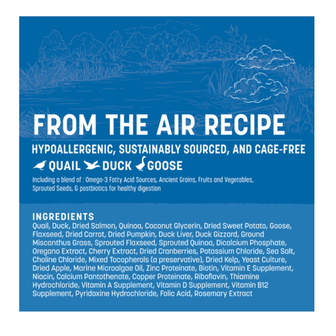 {"id":9870725808418,"title":"Earth Animal Wisdom Air-Dried From the Air Quail, Duck \u0026 Goose 2lb","handle":"earth-animal-wisdom-air-dried-from-the-air-quail-duck-goose-3lb","description":"\u003cp\u003e\u003cspan\u003eEarth Animal Wisdom Air-Dried \"From the Air\" Recipe with Quail, Duck \u0026amp; Goose Premium Natural Dog Food is the perfect choice for pet parents who want to give their pet the best nutrition possible. This limited animal protein food is carefully crafted in small batches using a gentle air-drying process that creates a soft, jerky-like texture and retains the natural, moist taste that dogs love. \u003c\/span\u003e\u003c\/p\u003e\n\u003cul\u003e\n\u003cli\u003e\u003cspan\u003eFeatures hypoallergenic, sustainably sourced, and cage-free quail, duck and goose organ and muscle meat, along with scrumptious salmon\u003c\/span\u003e\u003c\/li\u003e\n\u003cli\u003e\u003cspan\u003eHigh Palatability - Gentle cooking method ensures excellent flavor and aroma, an excellent alternative to highly processed kibble\u003c\/span\u003e\u003c\/li\u003e\n\u003cli\u003e\u003cspan\u003eHigh Nutrient Density - Blend of unique ingredients supporting optimal nutrition and wellness, providing 100% nutrition for dogs of all ages \u0026amp; sizes\u003c\/span\u003e\u003c\/li\u003e\n\u003cli\u003e\u003cspan\u003eHigh Digestibility - Holistic formula maintaining microbiome and gut health\u003c\/span\u003e\u003c\/li\u003e\n\u003c\/ul\u003e\n\u003cp\u003e\u003cspan\u003e\u003cspan style=\"text-decoration: underline;\"\u003eIngredients\u003c\/span\u003e:\u003cbr\u003e\u003cmeta charset=\"utf-8\"\u003eQuail, Duck, Dried Salmon, Quinoa, Coconut Glycerin, Dried Sweet Potato, Goose, Flaxseed, Dried Carrot, Dried Pumpkin, Duck Liver, Duck Gizzard, Ground Miscanthus Grass, Sprouted Flaxseed, Sprouted Quinoa, Dicalcium Phosphate, Oregano Extract, Cherry Extract, Dried Cranberries, Potassium Chloride, Sea Salt, Choline Chloride, Mixed Tocopherols (a preservative), Dried Kelp, Yeast Culture, Dried Apple, Marine Microalgae Oil, Zinc Proteinate, Biotin, Vitamin E Supplement, Niacin, Calcium Pantothenate, Copper Proteinate, Riboflavin, Thiamine Hydrochloride, Vitamin A Supplement, Vitamin D Supplement, Vitamin B12 Supplement, Pyridoxine Hydrochloride, Folic Acid, Rosemary Extract.\u003cbr\u003e\u003cbr\u003e\u003cspan style=\"text-decoration: underline;\"\u003eGuaranteed Analysis\u003c\/span\u003e:\u003cbr\u003eCrude Protein (min) 24%\u003cbr\u003eCrude Fat (min) 14%\u003cbr\u003eCrude Fiber (max) 5%\u003cbr\u003eMoisture (max) 18%\u003c\/span\u003e\u003c\/p\u003e","published_at":"2025-10-07T13:55:00-07:00","created_at":"2025-10-07T13:09:33-07:00","vendor":"Earth Animal","type":"Dog Food","tags":["Air Dried","Dog","Dog food","Freeze Dried Food"],"price":3999,"price_min":3999,"price_max":3999,"available":false,"price_varies":false,"compare_at_price":null,"compare_at_price_min":0,"compare_at_price_max":0,"compare_at_price_varies":false,"variants":[{"id":50399545491746,"title":"Default Title","option1":"Default Title","option2":null,"option3":null,"sku":"210000013950","requires_shipping":true,"taxable":true,"featured_image":null,"available":false,"name":"Earth Animal Wisdom Air-Dried From the Air Quail, Duck \u0026 Goose 2lb","public_title":null,"options":["Default Title"],"price":3999,"weight":907,"compare_at_price":null,"inventory_quantity":0,"inventory_management":"shopify","inventory_policy":"deny","barcode":"810132874901","requires_selling_plan":false,"selling_plan_allocations":[{"price_adjustments":[{"position":1,"price":3799}],"price":3799,"compare_at_price":3999,"per_delivery_price":3799,"selling_plan_id":9555968290,"selling_plan_group_id":"be5676770f7a2a402f39044871b9ae3b86c22e15"},{"price_adjustments":[{"position":1,"price":3799}],"price":3799,"compare_at_price":3999,"per_delivery_price":3799,"selling_plan_id":9556001058,"selling_plan_group_id":"be5676770f7a2a402f39044871b9ae3b86c22e15"},{"price_adjustments":[{"position":1,"price":3799}],"price":3799,"compare_at_price":3999,"per_delivery_price":3799,"selling_plan_id":9556033826,"selling_plan_group_id":"be5676770f7a2a402f39044871b9ae3b86c22e15"},{"price_adjustments":[{"position":1,"price":3799}],"price":3799,"compare_at_price":3999,"per_delivery_price":3799,"selling_plan_id":9556066594,"selling_plan_group_id":"be5676770f7a2a402f39044871b9ae3b86c22e15"},{"price_adjustments":[{"position":1,"price":3799}],"price":3799,"compare_at_price":3999,"per_delivery_price":3799,"selling_plan_id":9556099362,"selling_plan_group_id":"be5676770f7a2a402f39044871b9ae3b86c22e15"},{"price_adjustments":[{"position":1,"price":3799}],"price":3799,"compare_at_price":3999,"per_delivery_price":3799,"selling_plan_id":9556132130,"selling_plan_group_id":"be5676770f7a2a402f39044871b9ae3b86c22e15"},{"price_adjustments":[{"position":1,"price":3799}],"price":3799,"compare_at_price":3999,"per_delivery_price":3799,"selling_plan_id":9556164898,"selling_plan_group_id":"be5676770f7a2a402f39044871b9ae3b86c22e15"},{"price_adjustments":[{"position":1,"price":3799}],"price":3799,"compare_at_price":3999,"per_delivery_price":3799,"selling_plan_id":9556197666,"selling_plan_group_id":"be5676770f7a2a402f39044871b9ae3b86c22e15"},{"price_adjustments":[{"position":1,"price":3799}],"price":3799,"compare_at_price":3999,"per_delivery_price":3799,"selling_plan_id":9556230434,"selling_plan_group_id":"be5676770f7a2a402f39044871b9ae3b86c22e15"},{"price_adjustments":[{"position":1,"price":3799}],"price":3799,"compare_at_price":3999,"per_delivery_price":3799,"selling_plan_id":9556263202,"selling_plan_group_id":"be5676770f7a2a402f39044871b9ae3b86c22e15"},{"price_adjustments":[{"position":1,"price":3799}],"price":3799,"compare_at_price":3999,"per_delivery_price":3799,"selling_plan_id":9556295970,"selling_plan_group_id":"be5676770f7a2a402f39044871b9ae3b86c22e15"},{"price_adjustments":[{"position":1,"price":3799}],"price":3799,"compare_at_price":3999,"per_delivery_price":3799,"selling_plan_id":9556328738,"selling_plan_g
