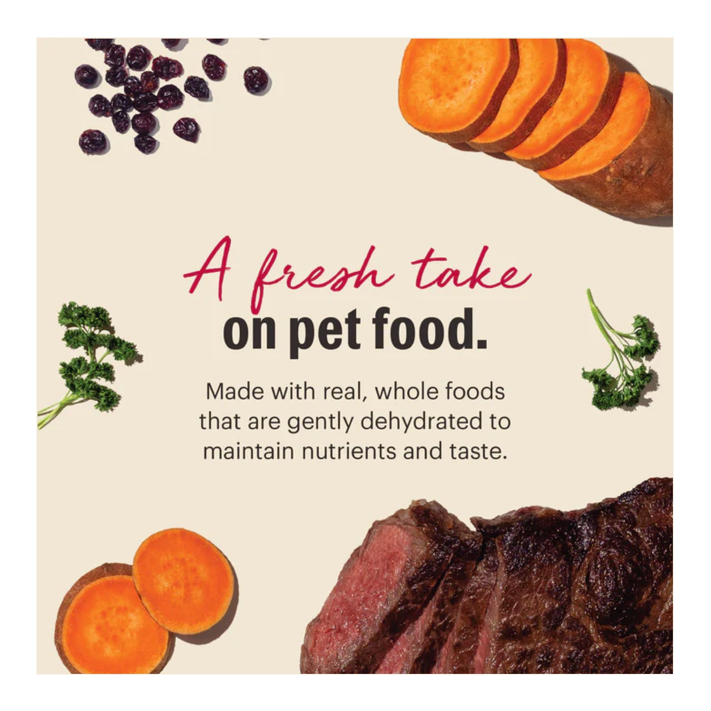 {"id":9653440381218,"title":"The Honest Kitchen WholeMade Dehydrated Grain Free Beef Recipe","handle":"the-honest-kitchen-dehydrated-grain-free-beef-recipe-love","description":"\u003cp\u003eThe Honest Kitchen believes human grade, whole foods provide pets the best nutrition possible. This grain free recipe is made with uncompromising quality control standards using real, whole food ingredients, like ranch raised beef, that are gently dehydrated to maintain nutrients \u0026amp; taste. Just add warm water and wait three minutes for a tasty, homemade meal that you and your pets will love!\u003c\/p\u003e\n\u003cul\u003e\n\u003cli\u003eAll ingredients are process in the USA in a human grade food processing facility\u003c\/li\u003e\n\u003cli\u003eNo by-products, non genetically modified and free of any chemicals or preservatives\u003c\/li\u003e\n\u003cli\u003eAll meat is hormone \u0026amp; antibiotic freer\u003c\/li\u003e\n\u003cli\u003eNo corn, wheat, soy or GMO ingredients\u003c\/li\u003e\n\u003c\/ul\u003e\n\u003cp\u003e\u003cspan style=\"text-decoration: underline;\"\u003eIngredients\u003c\/span\u003e:\u003cbr\u003e\u003cmeta charset=\"utf-8\"\u003e\u003cspan data-mce-fragment=\"1\"\u003eDehydrated beef, dehydrated sweet potatoes, dehydrated potatoes, flaxseed, dried organic coconut, dried parsley, dried papayas, dried cranberries, dehydrated pumpkin, dehydrated honey, dehydrated kale, minerals [tricalcium phosphate, sodium chloride, potassium chloride, choline chloride, zinc amino acid chelate, iron amino acid chelate, potassium iodide, copper amino acid chelate, sodium selenite], taurine, vitamins [vitamin E supplement, vitamin B12 supplement, thiamine mononitrate (vitamin B1), D- calcium pantothenate (vitamin B5), riboflavin (vitamin B2), vitamin D3 supplement], fish oil (a natural source of DHA and EPA).\u003c\/span\u003e\u003cbr\u003e\u003cbr\u003e\u003cspan style=\"text-decoration: underline;\"\u003eGuaranteed Analysis\u003c\/span\u003e:\u003cbr\u003eProtein 31%\u003cbr\u003eFat 14%\u003cbr\u003eFiber 7%\u003cbr\u003eMoisture 7.8%\u003cbr\u003e\u003cbr\u003e\u003cspan style=\"text-decoration: underline;\"\u003eCaloric Content\u003c\/span\u003e:\u003cbr\u003e514 kcal\/ cup\u003c\/p\u003e\n\u003cdiv class=\"pdp-details__col\"\u003e\u003cbr\u003e\u003c\/div\u003e","published_at":"2025-02-24T14:30:31-08:00","created_at":"2025-02-24T14:30:14-08:00","vendor":"The Honest Kitchen","type":"Dog Food","tags":["Dog","Dog food","Food","Food \u0026 Treats","Freeze Dried Food","Natural"],"price":6499,"price_min":6499,"price_max":12999,"available":true,"price_varies":true,"compare_at_price":0,"compare_at_price_min":0,"compare_at_price_max":0,"compare_at_price_varies":false,"variants":[{"id":49690049741090,"title":"4lb","option1":"4lb","option2":null,"option3":null,"sku":"210000001319","requires_shipping":true,"taxable":true,"featured_image":null,"available":true,"name":"The Honest Kitchen WholeMade Dehydrated Grain Free Beef Recipe - 4lb","public_title":"4lb","options":["4lb"],"price":6499,"weight":5,"compare_at_price":0,"inventory_quantity":2,"inventory_management":"shopify","inventory_policy":"deny","barcode":"183413002639","requires_selling_plan":false,"selling_plan_allocations":[{"price_adjustments":[{"position":1,"price":6174}],"price":6174,"compare_at_price":6499,"per_delivery_price":6174,"selling_plan_id":9606725922,"selling_plan_group_id":"be5676770f7a2a402f39044871b9ae3b86c22e15"},{"price_adjustments":[{"position":1,"price":6174}],"price":6174,"compare_at_price":6499,"per_delivery_price":6174,"selling_plan_id":9606758690,"selling_plan_group_id":"be5676770f7a2a402f39044871b9ae3b86c22e15"},{"price_adjustments":[{"position":1,"price":6174}],"price":6174,"compare_at_price":6499,"per_delivery_price":6174,"selling_plan_id":9606791458,"selling_plan_group_id":"be5676770f7a2a402f39044871b9ae3b86c22e15"},{"price_adjustments":[{"position":1,"price":6174}],"price":6174,"compare_at_price":6499,"per_delivery_price":6174,"selling_plan_id":9606824226,"selling_plan_group_id":"be5676770f7a2a402f39044871b9ae3b86c22e15"},{"price_adjustments":[{"position":1,"price":6174}],"price":6174,"compare_at_price":6499,"per_delivery_price":6174,"selling_plan_id":9606856994,"selling_plan_group_id":"be5676770f7a2a402f39044871b9ae3b86c22e15"},{"price_adjustments":[{"position":1,"price":6174}],"price":6174,"compare_at_price":6499,"per_delivery_price":6174,"selling_plan_id":9606889762,"selling_plan_group_id":"be5676770f7a2a402f39044871b9ae3b86c22e15"},{"price_adjustments":[{"position":1,"price":6174}],"price":6174,"compare_at_price":6499,"per_delivery_price":6174,"selling_plan_id":9606922530,"selling_plan_group_id":"be5676770f7a2a402f39044871b9ae3b86c22e15"},{"price_adjustments":[{"position":1,"price":6174}],"price":6174,"compare_at_price":6499,"per_delivery_price":6174,"selling_plan_id":9606955298,"selling_plan_group_id":"be5676770f7a2a402f39044871b9ae3b86c22e15"},{"price_adjustments":[{"position":1,"price":6174}],"price":6174,"compare_at_price":6499,"per_delivery_price":6174,"selling_plan_id":9606988066,"selling_plan_group_id":"be5676770f7a2a402f39044871b9ae3b86c22e15"},{"price_adjustments":[{"position":1,"price":6174}],"price":6174,"compare_at_price":6499,"per_delivery_price":6174,"selling_plan_id":9607020834,"selling_plan_group_id":"be5676770f7a2a402f39044871b9ae3b86c22e15"},{"price_adjustments":[{"position":1,"price":6174}],"price":6174,"compare_at_price":6499,"per_delivery_price":6174,"selling_plan_id":9607053602,"selling_plan_group_id":"be5676770f7a2a402f39044871b9ae3b86c22e15"},{"price_adjustments":[{"position":1,"price":6174}],"price":6174,"compare_at_price":6499,"per_delivery_price":6174,"selling_plan_id":9607086370,"selling_plan_group_id":"be5676770f7a2a402f39044871b9ae3b86c22e15"}]},{"id":49690049773858,"title":"7lb","option1":"7lb","option2":null,"option3":null,"sku":"210000001320","requires_shipping":true,"taxable":true,"featured_image":null,"available":false,"name":"The Honest Kitchen WholeMade Dehydrated Grain F