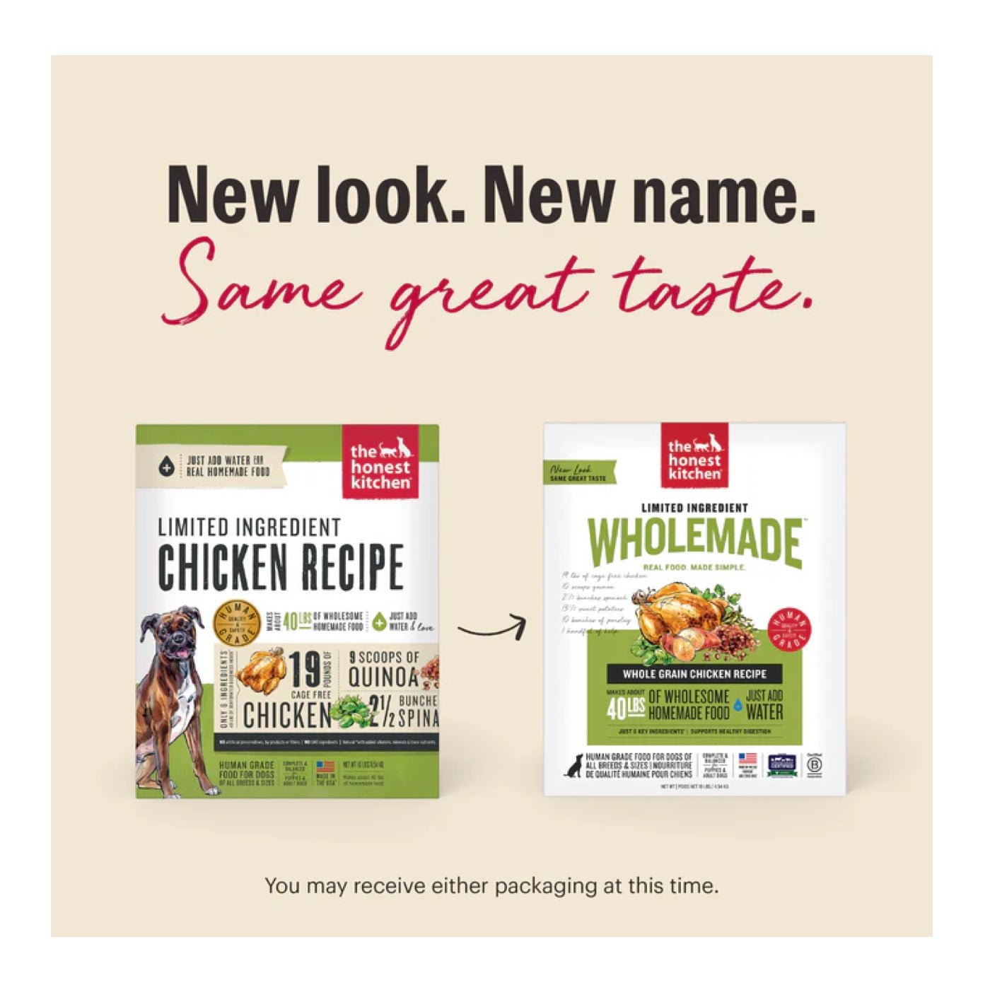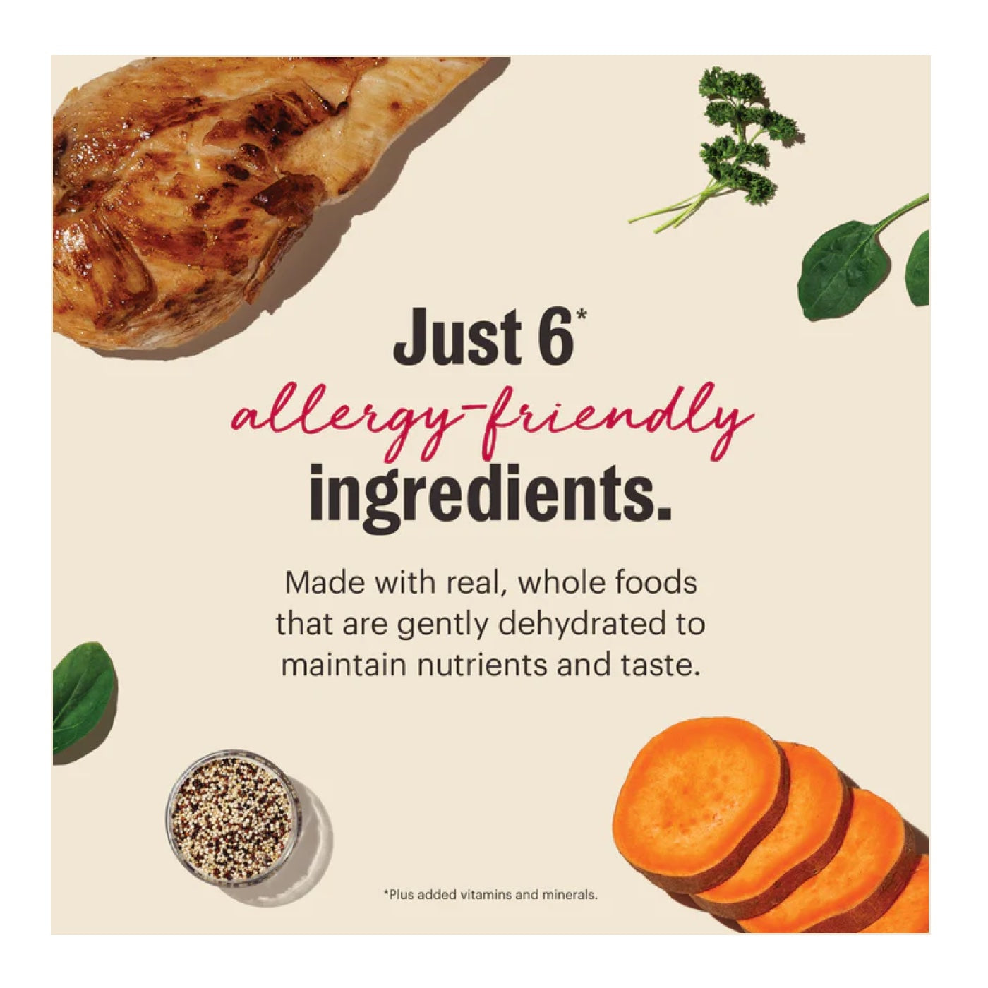 {"id":8346935492898,"title":"The Honest Kitchen WholeMade Dehydrated Limited Ingredient Chicken Recipe","handle":"the-honest-kitchen-dehydrated-limited-ingredient-chicken-recipe","description":"\u003cp\u003e\u003cmeta charset=\"utf-8\"\u003e\u003cspan\u003eThis Limited Ingredient Recipe made with just six whole foods is perfect for dogs with food sensitivities, or those who just appreciate the simpler things in life. This recipe is made with uncompromising quality control standards using real, whole food ingredients, like free range chicken, that are gently dehydrated to maintain nutrients \u0026amp; taste.\u003c\/span\u003e\u003c\/p\u003e\n\u003cul\u003e\n\u003cli\u003eAll ingredients are process in the USA in a human grade food processing facility\u003c\/li\u003e\n\u003cli\u003eNo by-products, non genetically modified and free of any chemicals or preservatives\u003c\/li\u003e\n\u003cli\u003eAll meat is hormone \u0026amp; antibiotic freer\u003c\/li\u003e\n\u003cli\u003eNo corn, wheat, soy or GMO ingredients\u003c\/li\u003e\n\u003c\/ul\u003e\n\u003cp\u003e\u003cspan style=\"text-decoration: underline;\"\u003eIngredients\u003c\/span\u003e:\u003cbr\u003e\u003cmeta charset=\"utf-8\"\u003e\u003cspan data-mce-fragment=\"1\"\u003eDehydrated chicken, organic quinoa, dehydrated sweet potatoes, dehydrated spinach, dried parsley, dried organic kelp, minerals [tricalcium phosphate, sodium chloride, potassium chloride, choline chloride, zinc amino acid chelate, iron amino acid chelate, potassium iodide, copper amino acid chelate, sodium selenite], taurine, vitamins [vitamin E supplement, vitamin B12 supplement, thiamine mononitrate (vitamin B1), calcium pantothenate (vitamin B5), riboflavin (vitamin B2), vitamin D3 supplement], fish oil (a natural source of DHA and EPA).\u003c\/span\u003e\u003cbr\u003e\u003cbr\u003e\u003cmeta charset=\"utf-8\"\u003e\u003cspan style=\"text-decoration: underline;\"\u003eGuaranteed Analysis\u003c\/span\u003e:\u003cbr data-mce-fragment=\"1\"\u003e\u003cspan data-mce-fragment=\"1\"\u003eProtein 26%\u003c\/span\u003e\u003cbr data-mce-fragment=\"1\"\u003e\u003cspan data-mce-fragment=\"1\"\u003eFat 16%\u003c\/span\u003e\u003cbr data-mce-fragment=\"1\"\u003e\u003cspan data-mce-fragment=\"1\"\u003eFiber 6.3%\u003c\/span\u003e\u003cbr data-mce-fragment=\"1\"\u003e\u003cspan data-mce-fragment=\"1\"\u003eMoisture 7.3%\u003c\/span\u003e\u003cbr data-mce-fragment=\"1\"\u003e\u003cbr data-mce-fragment=\"1\"\u003e\u003cspan style=\"text-decoration: underline;\"\u003eCaloric Content\u003c\/span\u003e\u003cspan data-mce-fragment=\"1\"\u003e:\u003c\/span\u003e\u003cbr data-mce-fragment=\"1\"\u003e\u003cspan data-mce-fragment=\"1\"\u003e516 kcal\/ cup\u003c\/span\u003e\u003c\/p\u003e","published_at":"2023-06-24T14:58:32-07:00","created_at":"2023-06-24T14:54:55-07:00","vendor":"The Honest Kitchen","type":"Dog Food","tags":["Dog","Dog food","Food","Food \u0026 Treats","Freeze Dried Food"],"price":5899,"price_min":5899,"price_max":11099,"available":true,"price_varies":true,"compare_at_price":null,"compare_at_price_min":0,"compare_at_price_max":0,"compare_at_price_varies":false,"variants":[{"id":45429490352418,"title":"4lb","option1":"4lb","option2":null,"option3":null,"sku":"210000001313","requires_shipping":true,"taxable":true,"featured_image":null,"available":false,"name":"The Honest Kitchen WholeMade Dehydrated Limited Ingredient Chicken Recipe - 4lb","public_title":"4lb","options":["4lb"],"price":5899,"weight":1814,"compare_at_price":null,"inventory_quantity":0,"inventory_management":"shopify","inventory_policy":"deny","barcode":null,"requires_selling_plan":false,"selling_plan_allocations":[{"price_adjustments":[{"position":1,"price":5604}],"price":5604,"compare_at_price":5899,"per_delivery_price":5604,"selling_plan_id":9606725922,"selling_plan_group_id":"be5676770f7a2a402f39044871b9ae3b86c22e15"},{"price_adjustments":[{"position":1,"price":5604}],"price":5604,"compare_at_price":5899,"per_delivery_price":5604,"selling_plan_id":9606758690,"selling_plan_group_id":"be5676770f7a2a402f39044871b9ae3b86c22e15"},{"price_adjustments":[{"position":1,"price":5604}],"price":5604,"compare_at_price":5899,"per_delivery_price":5604,"selling_plan_id":9606791458,"selling_plan_group_id":"be5676770f7a2a402f39044871b9ae3b86c22e15"},{"price_adjustments":[{"position":1,"price":5604}],"price":5604,"compare_at_price":5899,"per_delivery_price":5604,"selling_plan_id":9606824226,"selling_plan_group_id":"be5676770f7a2a402f39044871b9ae3b86c22e15"},{"price_adjustments":[{"position":1,"price":5604}],"price":5604,"compare_at_price":5899,"per_delivery_price":5604,"selling_plan_id":9606856994,"selling_plan_group_id":"be5676770f7a2a402f39044871b9ae3b86c22e15"},{"price_adjustments":[{"position":1,"price":5604}],"price":5604,"compare_at_price":5899,"per_delivery_price":5604,"selling_plan_id":9606889762,"selling_plan_group_id":"be5676770f7a2a402f39044871b9ae3b86c22e15"},{"price_adjustments":[{"position":1,"price":5604}],"price":5604,"compare_at_price":5899,"per_delivery_price":5604,"selling_plan_id":9606922530,"selling_plan_group_id":"be5676770f7a2a402f39044871b9ae3b86c22e15"},{"price_adjustments":[{"position":1,"price":5604}],"price":5604,"compare_at_price":5899,"per_delivery_price":5604,"selling_plan_id":9606955298,"selling_plan_group_id":"be5676770f7a2a402f39044871b9ae3b86c22e15"},{"price_adjustments":[{"position":1,"price":5604}],"price":5604,"compare_at_price":5899,"per_delivery_price":5604,"selling_plan_id":9606988066,"selling_plan_group_id":"be5676770f7a2a402f39044871b9ae3b86c22e15"},{"price_adjustments":[{"position":1,"price":5604}],"price":5604,"compare_at_price":5899,"per_delivery_price":5604,"selling_plan_id":9607020834,"selling_plan_group_id":"be5676770f7a2a402f39044871b9ae3b86c22e15"},{"price_adjustments":[{"position":1,"price":5604}],"price":5604,"compare_at_price":5899,"per_delivery_price":5604,"selling_plan_id":9607053602,"selling_plan_group_id":"be5676770f7a2a402f39044871b9ae3b86c22e15"},{"price_adjustments