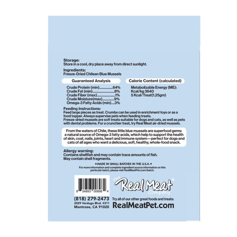 {"id":9885988782370,"title":"The Real Meat Co. Air-Dried Blue Mussels 3.6oz","handle":"the-real-meat-co-air-dried-blue-mussels-5oz-copy","description":"\u003cp\u003e\u003cmeta charset=\"utf-8\"\u003e\u003cspan\u003eThese delightful treats are crafted from air-dried Chilean Blue Shell Mussels, making them a unique and nutritious option for your furry friend. These mussels are packed with omega-3 fatty acids, making them not only delicious but also beneficial for your dog's health. Whether your canine companion is a gentle nibbler or a hearty chewer, these air-dried mussels are sure to be a hit!\u003c\/span\u003e\u003c\/p\u003e\n\u003cul\u003e\n\u003cli\u003e\u003cspan\u003eFrom the waters of Chile, these little blue mussels are superfood gems: a natural source of Omega-3 fatty acids, which help to support the health of skin, coat, nails, joints, heart and the immune system\u003c\/span\u003e\u003c\/li\u003e\n\u003cli\u003e\u003cspan\u003eThese treats are crunchy and designed for dogs with strong teeth\u003c\/span\u003e\u003c\/li\u003e\n\u003cli\u003e\u003cspan\u003eEach treat comes in small, irregular shapes measuring approximately 1\/2 inch each\u003c\/span\u003e\u003c\/li\u003e\n\u003c\/ul\u003e\n\u003cp\u003e\u003cspan style=\"text-decoration: underline;\"\u003eIngredients\u003c\/span\u003e:\u003cbr\u003eChilean Mussels\u003cbr\u003e\u003cspan style=\"text-decoration: underline;\"\u003e\u003cbr\u003eCaloric Content\u003c\/span\u003e:\u003cbr\u003e5 kcal\/ piece\u003c\/p\u003e","published_at":"2025-10-21T19:23:54-07:00","created_at":"2025-10-21T19:20:48-07:00","vendor":"The Real Meat Company","type":"Dog Treats","tags":["Air Dried","Air Dried Treats","Dog Treats","Freeze Dried Treats"],"price":1299,"price_min":1299,"price_max":1299,"available":true,"price_varies":false,"compare_at_price":null,"compare_at_price_min":0,"compare_at_price_max":0,"compare_at_price_varies":false,"variants":[{"id":50448362570018,"title":"Default Title","option1":"Default Title","option2":null,"option3":null,"sku":"210000014022","requires_shipping":true,"taxable":true,"featured_image":null,"available":true,"name":"The Real Meat Co. Air-Dried Blue Mussels 3.6oz","public_title":null,"options":["Default Title"],"price":1299,"weight":102,"compare_at_price":null,"inventory_quantity":4,"inventory_management":"shopify","inventory_policy":"deny","barcode":"855266005913","requires_selling_plan":false,"selling_plan_allocations":[{"price_adjustments":[{"position":1,"price":1234}],"price":1234,"compare_at_price":1299,"per_delivery_price":1234,"selling_plan_id":9614197026,"selling_plan_group_id":"be5676770f7a2a402f39044871b9ae3b86c22e15"},{"price_adjustments":[{"position":1,"price":1234}],"price":1234,"compare_at_price":1299,"per_delivery_price":1234,"selling_plan_id":9614229794,"selling_plan_group_id":"be5676770f7a2a402f39044871b9ae3b86c22e15"},{"price_adjustments":[{"position":1,"price":1234}],"price":1234,"compare_at_price":1299,"per_delivery_price":1234,"selling_plan_id":9614262562,"selling_plan_group_id":"be5676770f7a2a402f39044871b9ae3b86c22e15"},{"price_adjustments":[{"position":1,"price":1234}],"price":1234,"compare_at_price":1299,"per_delivery_price":1234,"selling_plan_id":9614295330,"selling_plan_group_id":"be5676770f7a2a402f39044871b9ae3b86c22e15"},{"price_adjustments":[{"position":1,"price":1234}],"price":1234,"compare_at_price":1299,"per_delivery_price":1234,"selling_plan_id":9614328098,"selling_plan_group_id":"be5676770f7a2a402f39044871b9ae3b86c22e15"},{"price_adjustments":[{"position":1,"price":1234}],"price":1234,"compare_at_price":1299,"per_delivery_price":1234,"selling_plan_id":9614360866,"selling_plan_group_id":"be5676770f7a2a402f39044871b9ae3b86c22e15"},{"price_adjustments":[{"position":1,"price":1234}],"price":1234,"compare_at_price":1299,"per_delivery_price":1234,"selling_plan_id":9614393634,"selling_plan_group_id":"be5676770f7a2a402f39044871b9ae3b86c22e15"},{"price_adjustments":[{"position":1,"price":1234}],"price":1234,"compare_at_price":1299,"per_delivery_price":1234,"selling_plan_id":9614426402,"selling_plan_group_id":"be5676770f7a2a402f39044871b9ae3b86c22e15"},{"price_adjustments":[{"position":1,"price":1234}],"price":1234,"compare_at_price":1299,"per_delivery_price":1234,"selling_plan_id":9614459170,"selling_plan_group_id":"be5676770f7a2a402f39044871b9ae3b86c22e15"},{"price_adjustments":[{"position":1,"price":1234}],"price":1234,"compare_at_price":1299,"per_delivery_price":1234,"selling_plan_id":9614491938,"selling_plan_group_id":"be5676770f7a2a402f39044871b9ae3b86c22e15"},{"price_adjustments":[{"position":1,"price":1234}],"price":1234,"compare_at_price":1299,"per_delivery_price":1234,"selling_plan_id":9614524706,"selling_plan_group_id":"be5676770f7a2a402f39044871b9ae3b86c22e15"},{"price_adjustments":[{"position":1,"price":1234}],"price":1234,"compare_at_price":1299,"per_delivery_price":1234,"selling_plan_id":9614557474,"selling_plan_group_id":"be5676770f7a2a402f39044871b9ae3b86c22e15"},{"price_adjustments":[{"position":1,"price":1234}],"price":1234,"compare_at_price":1299,"per_delivery_price":1234,"selling_plan_id":9614590242,"selling_plan_group_id":"be5676770f7a2a402f39044871b9ae3b86c22e15"}]}],"images":["\/\/furlys.com\/cdn\/shop\/files\/Real_Meat_Blue_Mussels_2.5.jpg?v=1761099750","\/\/furlys.com\/cdn\/shop\/files\/Real_Meat_Blue_Mussels_2.5_back.jpg?v=1761099750"],"featured_image":"\/\/furlys.com\/cdn\/shop\/files\/Real_Meat_Blue_Mussels_2.5.jpg?v=1761099750","options":["Title"],"media":[{"alt":null,"id":53046398058786,"position":1,"preview_image":{"aspect_ratio":1.0,"height":800,"width":800,"src":"\/\/furlys.com\/cdn\/shop\/files\/Real_Meat_Blue_Mussels_2.5.jpg?v=1761099750"},"aspect_ratio":1.0,"height":800,"media_type":"image","src":"\/\/furlys.com\/cdn\/shop\/files\/Real_Meat_Blue_Mussels_2.5.jpg?v=1761099750","width":800},{"alt":null,"id":53046398091554,"position":2,"preview_image":{"aspect_ratio":1.0,"height":800,"width":800,"src":"\/\/furlys.com\/cdn\/shop\/files\/Real_Meat_Blue_Mussels