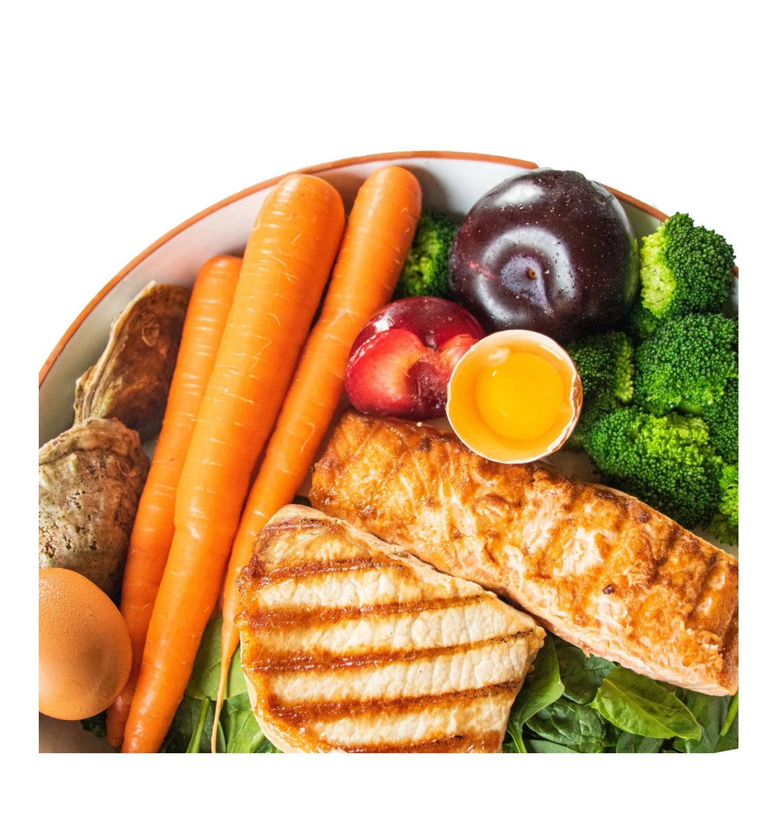 Rabbit, pollock, pork liver, eggs, broccoli, spinach, carrot, mackerel, strawberries, apples, organic sprouted sunflower seeds, oysters, omega-3 fish oil (sardine, herring, mackerel, anchovy), ground eggshell, organic dried kelp