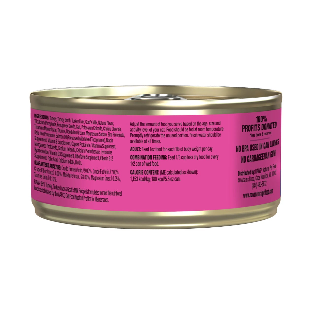 Rawz 96% Turkey & Turkey Liver with Goat's Milk Canned Cat Food