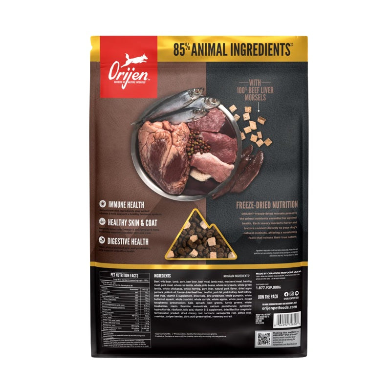 {"id":9875898138914,"title":"Orijen Wild Reserve Farm-Raised Beef \u0026 Lamb Dry Dog Food","handle":"orijen-wild-reserve-farm-raised-beef-lamb-dry-dog-food","description":"\u003cdiv class=\"description-and-detail\"\u003e\n\u003cp\u003e\u003cmeta charset=\"utf-8\"\u003e\u003cmeta charset=\"utf-8\"\u003e\u003cspan\u003eMake every meal enjoyable for your dog and convenient for you with Orijen Wild Reserve dog food. The Wild Reserve Farm-Raised Beef \u0026amp; Lamb recipe provides all the nourishing, protein-packed dry food pets enjoy and elevates it with 100% beef liver morsels, freeze-dried to preserve flavor and nutrition for your dog. Made with nutrient-dense WholePrey animal ingredients and no fillers, this recipe provides your dog with the nutrients that help them thrive\u003c\/span\u003e\u003cbr\u003e\u003c\/p\u003e\n\u003cul\u003e\n\u003cli\u003eProvides a variety of textures and flavors at mealtime in one convenient format, while providing the nourishing, protein-packed dry food dogs crave\u003c\/li\u003e\n\u003cli\u003e\n\u003cmeta charset=\"utf-8\"\u003e \u003cspan\u003e\u003cmeta charset=\"utf-8\"\u003eIncludes 100% beef liver morsels you can see, freeze-dried to lock in flavor and nutrition\u003c\/span\u003e\n\u003c\/li\u003e\n\u003cli\u003e\n\u003cmeta charset=\"utf-8\"\u003e \u003cmeta charset=\"utf-8\"\u003e \u003cspan\u003eMade with WholePrey animal ingredients including protein-rich meat, nutrient-dense organs and mineral-rich bone\u003c\/span\u003e\u003cbr\u003e\n\u003c\/li\u003e\n\u003cli\u003eHelps support your dog’s Digestive Health, Healthy Skin \u0026amp; Coat and Immune Health\u003cbr\u003e\n\u003c\/li\u003e\n\u003c\/ul\u003e\n\u003cp\u003e\u003cspan style=\"text-decoration: underline;\"\u003eIngredients\u003c\/span\u003e:\u003cbr\u003e\u003cmeta charset=\"utf-8\"\u003e\u003cspan\u003eBeef, wild boar, lamb, pork, beef liver, beef meal, lamb meal, mackerel meal, herring meal, pork meal, whole red lentils, whole pinto beans, whole navy beans, whole green lentils, whole chickpeas, whole herring, pork liver, natural pork flavor, dried apple pomace, pollock oil, freeze-dried beef liver, beef fat, pork fat, pork kidney, beef kidney, beef tripe, vitamin E supplement, dried kelp, zinc proteinate, whole pumpkin, whole butternut squash, whole zucchini, whole carrots, whole apples, whole pears, mixed tocopherols (preservative), kale, spinach, beet greens, turnip greens, whole blueberries, niacin, thiamine mononitrate, calcium pantothenate, pyridoxine hydrochloride, riboflavin, folic acid, vitamin B12 supplement, dried Bacillus coagulans fermentation product, dried chicory root, turmeric, sarsaparilla root, althea root, rosehips, juniper berries, citric acid (preservative), rosemary extract\u003c\/span\u003e\u003cbr\u003e\u003c\/p\u003e\n\u003cp\u003e\u003cspan style=\"text-decoration: underline;\"\u003eGuaranteed Analysis\u003c\/span\u003e:\u003cbr\u003eCrude Protein (min) 38%\u003cbr\u003eCrude Fat (min) 18%\u003cbr\u003eCrude Fiber (max) 12%\u003cbr\u003eMoisture (max) 12%\u003c\/p\u003e\n\u003cp\u003e\u003cspan style=\"text-decoration: underline;\"\u003eCaloric Content\u003c\/span\u003e:\u003cbr\u003e463 kcal\/ cup\u003c\/p\u003e\n\u003c\/div\u003e","published_at":"2025-10-13T22:49:22-07:00","created_at":"2025-10-13T22:44:30-07:00","vendor":"Orijen","type":"Dog Food","tags":["Dog","Dog food","Dry Food","Freeze Dried Food","Grain Free","grains","kibble","wholesome grains"],"price":3199,"price_min":3199,"price_max":11299,"available":true,"price_varies":true,"compare_at_price":3999,"compare_at_price_min":3999,"compare_at_price_max":14099,"compare_at_price_varies":true,"variants":[{"id":50416213033250,"title":"4lb","option1":"4lb","option2":null,"option3":null,"sku":"210000013968","requires_shipping":true,"taxable":true,"featured_image":null,"available":true,"name":"Orijen Wild Reserve Farm-Raised Beef \u0026 Lamb Dry Dog Food - 4lb","public_title":"4lb","options":["4lb"],"price":3199,"weight":1814,"compare_at_price":3999,"inventory_quantity":4,"inventory_management":"shopify","inventory_policy":"deny","barcode":"064992728083","requires_selling_plan":false,"selling_plan_allocations":[]},{"id":50416213066018,"title":"12lb","option1":"12lb","option2":null,"option3":null,"sku":"210000013969","requires_shipping":true,"taxable":true,"featured_image":null,"available":true,"name":"Orijen Wild Reserve Farm-Raised Beef \u0026 Lamb Dry Dog Food - 12lb","public_title":"12lb","options":["12lb"],"price":7399,"weight":5443,"compare_at_price":9199,"inventory_quantity":1,"inventory_management":"shopify","inventory_policy":"deny","barcode":"064992728106","requires_selling_plan":false,"selling_plan_allocations":[]},{"id":50416213098786,"title":"20lb","option1":"20lb","option2":null,"option3":null,"sku":"210000013970","requires_shipping":true,"taxable":true,"featured_image":null,"available":true,"name":"Orijen Wild Reserve Farm-Raised Beef \u0026 Lamb Dry Dog Food - 20lb","public_title":"20lb","options":["20lb"],"price":11299,"weight":9072,"compare_at_price":14099,"inventory_quantity":1,"inventory_management":"shopify","inventory_policy":"deny","barcode":"064992728113","requires_selling_plan":false,"selling_plan_allocations":[]}],"images":["\/\/furlys.com\/cdn\/shop\/files\/Orijen_WildReserve_Beef_Lamb.jpg?v=1760420770","\/\/furlys.com\/cdn\/shop\/files\/Orijen_WildReserve_Beef_Lamb1.jpg?v=1760420780","\/\/furlys.com\/cdn\/shop\/files\/Orijen_WildReserve_Beef_Lamb2.jpg?v=1760420780","\/\/furlys.com\/cdn\/shop\/files\/Orijen_WildReserve_Beef_Lamb3.jpg?v=1760420780"],"featured_image":"\/\/furlys.com\/cdn\/shop\/files\/Orijen_WildReserve_Beef_Lamb.jpg?v=1760420770","options":["Size"],"media":[{"alt":null,"id":52973689274658,"position":1,"preview_image":{"aspect_ratio":1.0,"height":800,"width":800,"src":"\/\/furlys.com\/cdn\/shop\/files\/Orijen_WildReserve_Beef_Lamb.jpg?v=1760420770"},"aspect_ratio":1.0,"height":800,"media_type":"image","src":"\/\/furlys.com\/cdn\/shop\/files\/Orijen_WildReserve_Be