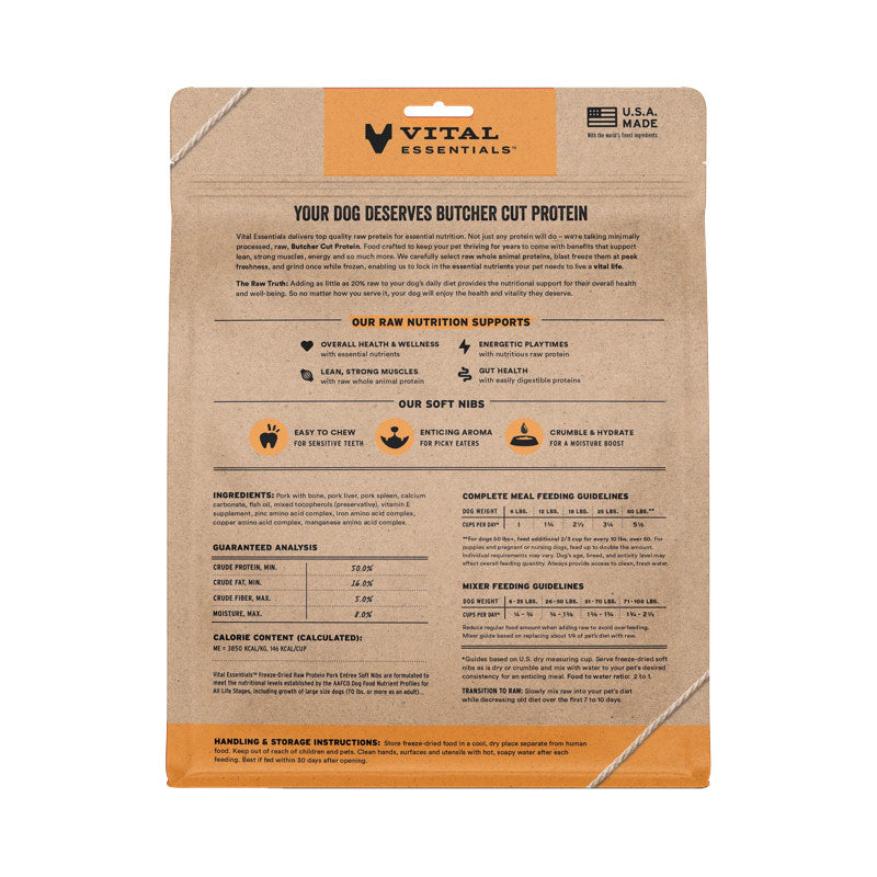 {"id":9760517325090,"title":"Vital Essentials Pork Entree Freeze Dried Raw Soft Nibs 14oz","handle":"vital-essentials-pork-entree-freeze-dried-raw-soft-nibs-14oz","description":"\u003cp\u003e\u003cmeta charset=\"utf-8\"\u003e\u003cmeta charset=\"utf-8\"\u003e\u003cspan\u003eTreat your dog to Vital Essentials' sumptuous freeze-dried Pork Soft Nibs, crafted with 99% raw pork, organs, and bone. These tender morsels deliver premium protein while being gentle on sensitive teeth. The mouthwatering aroma entices even the most selective eaters, and you can crumble and rehydrate them for a moisture-rich feast. Serve as a complete meal or enhance your pet's bowl with 20% soft nibs to unlock the benefits of raw nutrition. Each bite provides naturally occurring vitamins and minerals that support muscle strength, digestion, and overall vitality.\u003c\/span\u003e\u003cbr\u003e\u003cmeta charset=\"utf-8\"\u003e\u003c\/p\u003e\n\u003cul\u003e\n\u003cli\u003e\u003cspan\u003eGrain and gluten fee\u003c\/span\u003e\u003c\/li\u003e\n\u003cli\u003e\u003cspan\u003eWhole animal protein\u003c\/span\u003e\u003c\/li\u003e\n\u003cli\u003e\u003cspan\u003eAmerican crafted\u003c\/span\u003e\u003c\/li\u003e\n\u003c\/ul\u003e\n\u003cp\u003e\u003cspan\u003e\u003cmeta charset=\"utf-8\"\u003e \u003cspan style=\"text-decoration: underline;\"\u003eIngredients\u003c\/span\u003e:\u003cbr\u003e\u003cmeta charset=\"utf-8\"\u003ePork with bone, pork liver, pork spleen, calcium carbonate, fish oil, mixed tocopherols (preservative), vitamin E supplement, zinc amino acid complex, iron amino acid complex, copper amino acid complex, manganese amino acid complex\u003cbr\u003e\u003cbr\u003e\u003c\/span\u003e\u003cspan\u003e\u003cspan style=\"text-decoration: underline;\"\u003eGuaranteed Analysis\u003c\/span\u003e:\u003cbr\u003eProtein 50%\u003cbr\u003eFat 16%\u003cbr\u003eFiber 5%\u003cbr\u003eMoisture 8%\u003cbr\u003e\u003cbr\u003e\u003cspan style=\"text-decoration: underline;\"\u003eCaloric Content\u003c\/span\u003e:\u003cbr\u003e146 kcal\/ cup\u003c\/span\u003e\u003c\/p\u003e","published_at":"2025-06-18T00:06:50-07:00","created_at":"2025-06-18T00:04:26-07:00","vendor":"Vital Essentials","type":"Dog Food","tags":["Dog","Dog food","Food","Food \u0026 Treats","Food Toppers","Freeze Dried Food","Grain Free"],"price":3499,"price_min":3499,"price_max":3499,"available":true,"price_varies":false,"compare_at_price":null,"compare_at_price_min":0,"compare_at_price_max":0,"compare_at_price_varies":false,"variants":[{"id":50033116774690,"title":"Default Title","option1":"Default Title","option2":null,"option3":null,"sku":"210000013547","requires_shipping":true,"taxable":true,"featured_image":null,"available":true,"name":"Vital Essentials Pork Entree Freeze Dried Raw Soft Nibs 14oz","public_title":null,"options":["Default Title"],"price":3499,"weight":397,"compare_at_price":null,"inventory_quantity":3,"inventory_management":"shopify","inventory_policy":"deny","barcode":"840199680245","requires_selling_plan":false,"selling_plan_allocations":[{"price_adjustments":[{"position":1,"price":3324}],"price":3324,"compare_at_price":3499,"per_delivery_price":3324,"selling_plan_id":9515139362,"selling_plan_group_id":"be5676770f7a2a402f39044871b9ae3b86c22e15"},{"price_adjustments":[{"position":1,"price":3324}],"price":3324,"compare_at_price":3499,"per_delivery_price":3324,"selling_plan_id":9515172130,"selling_plan_group_id":"be5676770f7a2a402f39044871b9ae3b86c22e15"},{"price_adjustments":[{"position":1,"price":3324}],"price":3324,"compare_at_price":3499,"per_delivery_price":3324,"selling_plan_id":9515204898,"selling_plan_group_id":"be5676770f7a2a402f39044871b9ae3b86c22e15"},{"price_adjustments":[{"position":1,"price":3324}],"price":3324,"compare_at_price":3499,"per_delivery_price":3324,"selling_plan_id":9515237666,"selling_plan_group_id":"be5676770f7a2a402f39044871b9ae3b86c22e15"},{"price_adjustments":[{"position":1,"price":3324}],"price":3324,"compare_at_price":3499,"per_delivery_price":3324,"selling_plan_id":9515270434,"selling_plan_group_id":"be5676770f7a2a402f39044871b9ae3b86c22e15"},{"price_adjustments":[{"position":1,"price":3324}],"price":3324,"compare_at_price":3499,"per_delivery_price":3324,"selling_plan_id":9515303202,"selling_plan_group_id":"be5676770f7a2a402f39044871b9ae3b86c22e15"},{"price_adjustments":[{"position":1,"price":3324}],"price":3324,"compare_at_price":3499,"per_delivery_price":3324,"selling_plan_id":9515335970,"selling_plan_group_id":"be5676770f7a2a402f39044871b9ae3b86c22e15"},{"price_adjustments":[{"position":1,"price":3324}],"price":3324,"compare_at_price":3499,"per_delivery_price":3324,"selling_plan_id":9515368738,"selling_plan_group_id":"be5676770f7a2a402f39044871b9ae3b86c22e15"},{"price_adjustments":[{"position":1,"price":3324}],"price":3324,"compare_at_price":3499,"per_delivery_price":3324,"selling_plan_id":9515401506,"selling_plan_group_id":"be5676770f7a2a402f39044871b9ae3b86c22e15"},{"price_adjustments":[{"position":1,"price":3324}],"price":3324,"compare_at_price":3499,"per_delivery_price":3324,"selling_plan_id":9515434274,"selling_plan_group_id":"be5676770f7a2a402f39044871b9ae3b86c22e15"},{"price_adjustments":[{"position":1,"price":3324}],"price":3324,"compare_at_price":3499,"per_delivery_price":3324,"selling_plan_id":9515467042,"selling_plan_group_id":"be5676770f7a2a402f39044871b9ae3b86c22e15"},{"price_adjustments":[{"position":1,"price":3324}],"price":3324,"compare_at_price":3499,"per_delivery_price":3324,"selling_plan_id":9515499810,"selling_plan_group_id":"be5676770f7a2a402f39044871b9ae3b86c22e15"}]}],"images":["\/\/furlys.com\/cdn\/shop\/files\/VitalEssentials_SoftNibs_Pork.jpg?v=1754637189","\/\/furlys.com\/cdn\/shop\/files\/VitalEssentials_SoftNibs_Pork1.jpg?v=1754637189","\/\/furlys.com\/cdn\/shop\/files\/VitalEssentials_SoftNibs_Benefits_1.jpg?v=1754637192","\/\/furlys.com\/cdn\/shop\/files\/VitalEssentials_SoftNibs_Ways_to_Feed.jpg?v=1754637192"],"featured_image":"\/\/furlys.com\/cdn\/shop\/files\/VitalEssentials_So