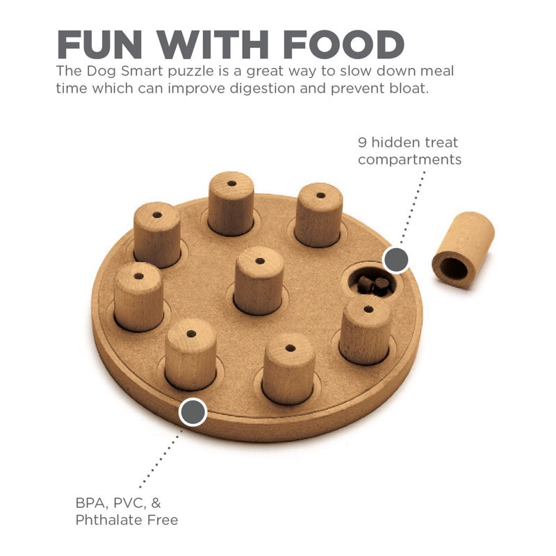 • Beginner Level Fun: The level 1 Dog Smart interactive treat puzzle dog toy is made for beginners and is great way to introduce the concept of puzzles with one-step actions to your pet of any size, breed, or age