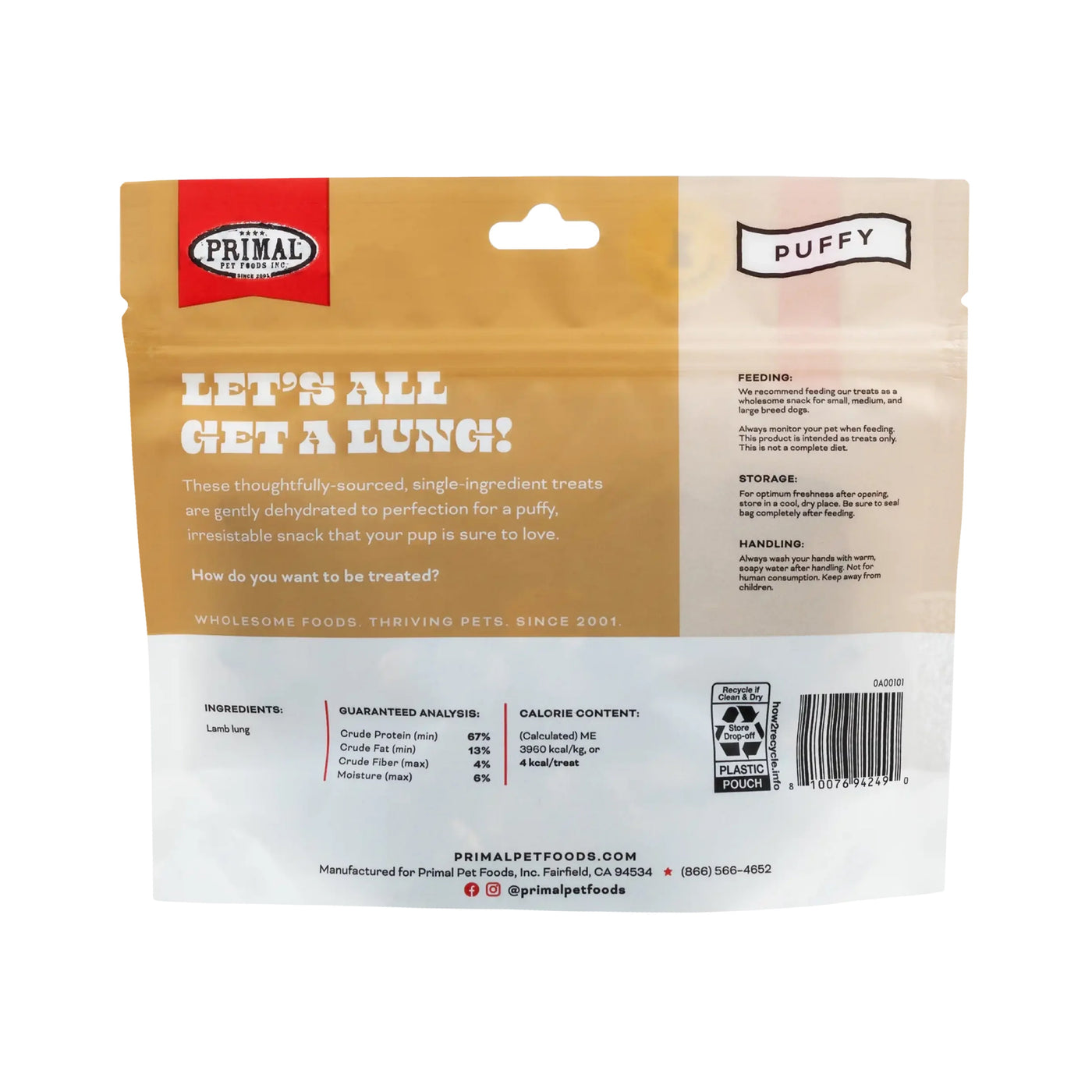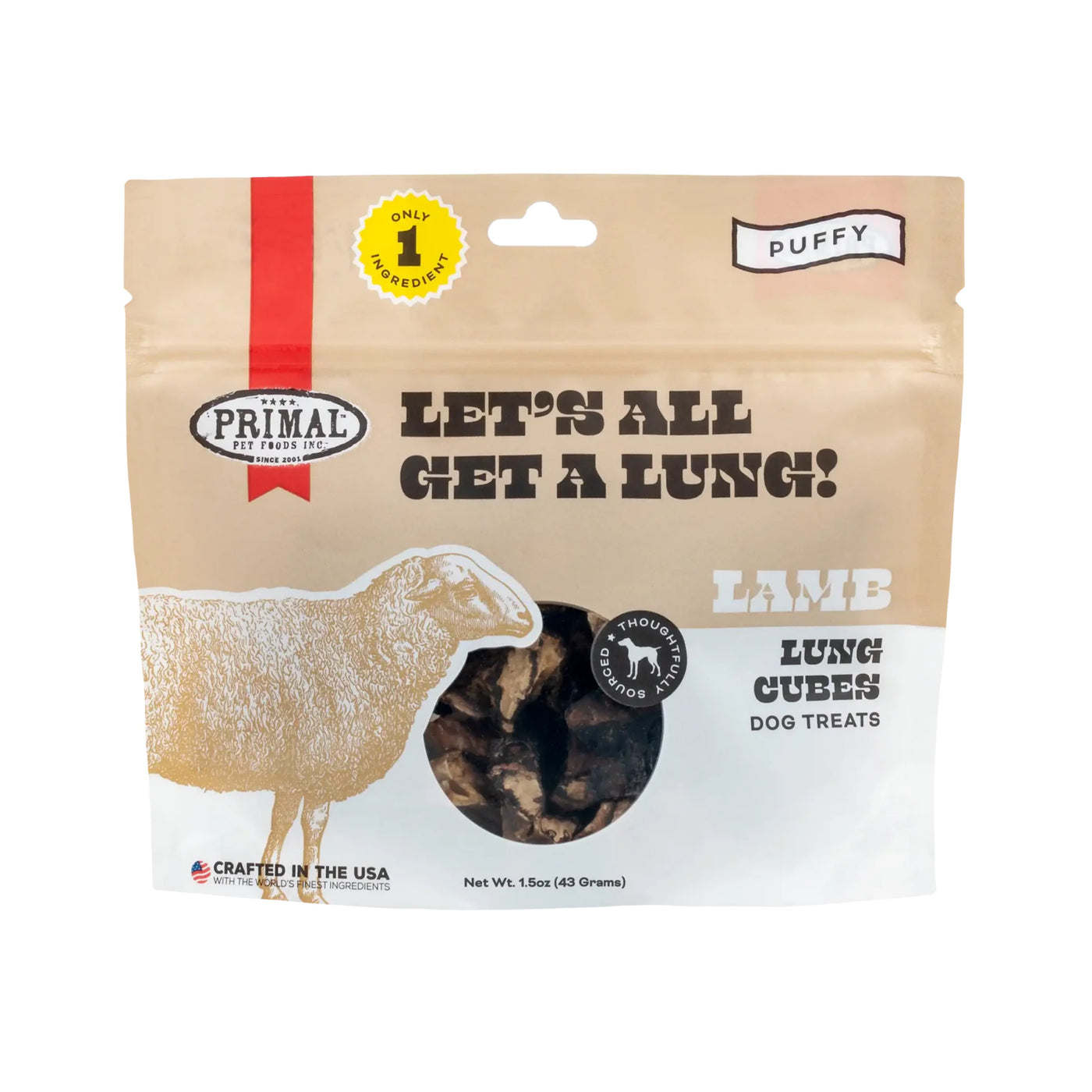 Primal Let's All Get Along Dehydrated Lamb Lung Dog Treats 1.5oz