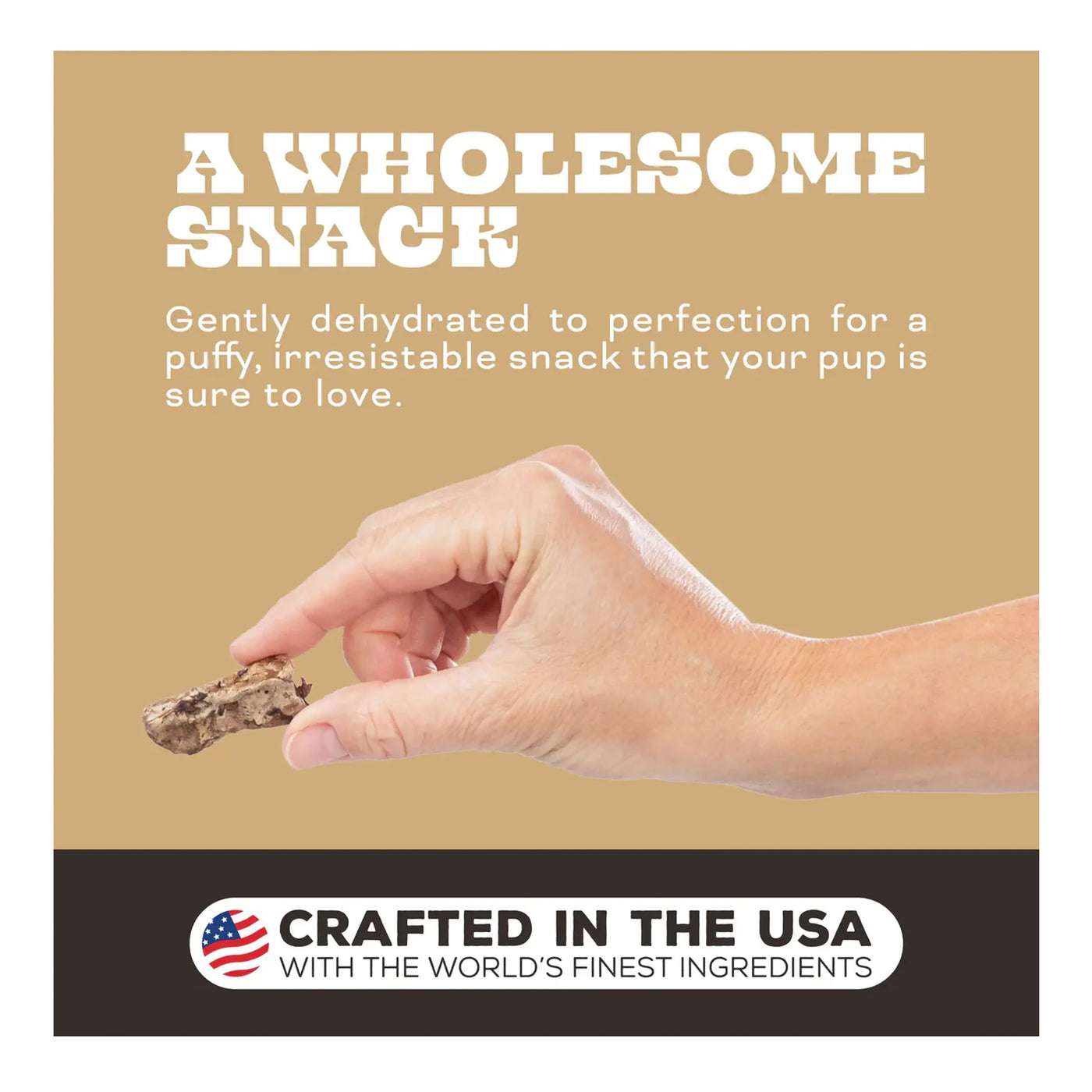 • Gently dehydrated for a tasty crunch and puffy texture
