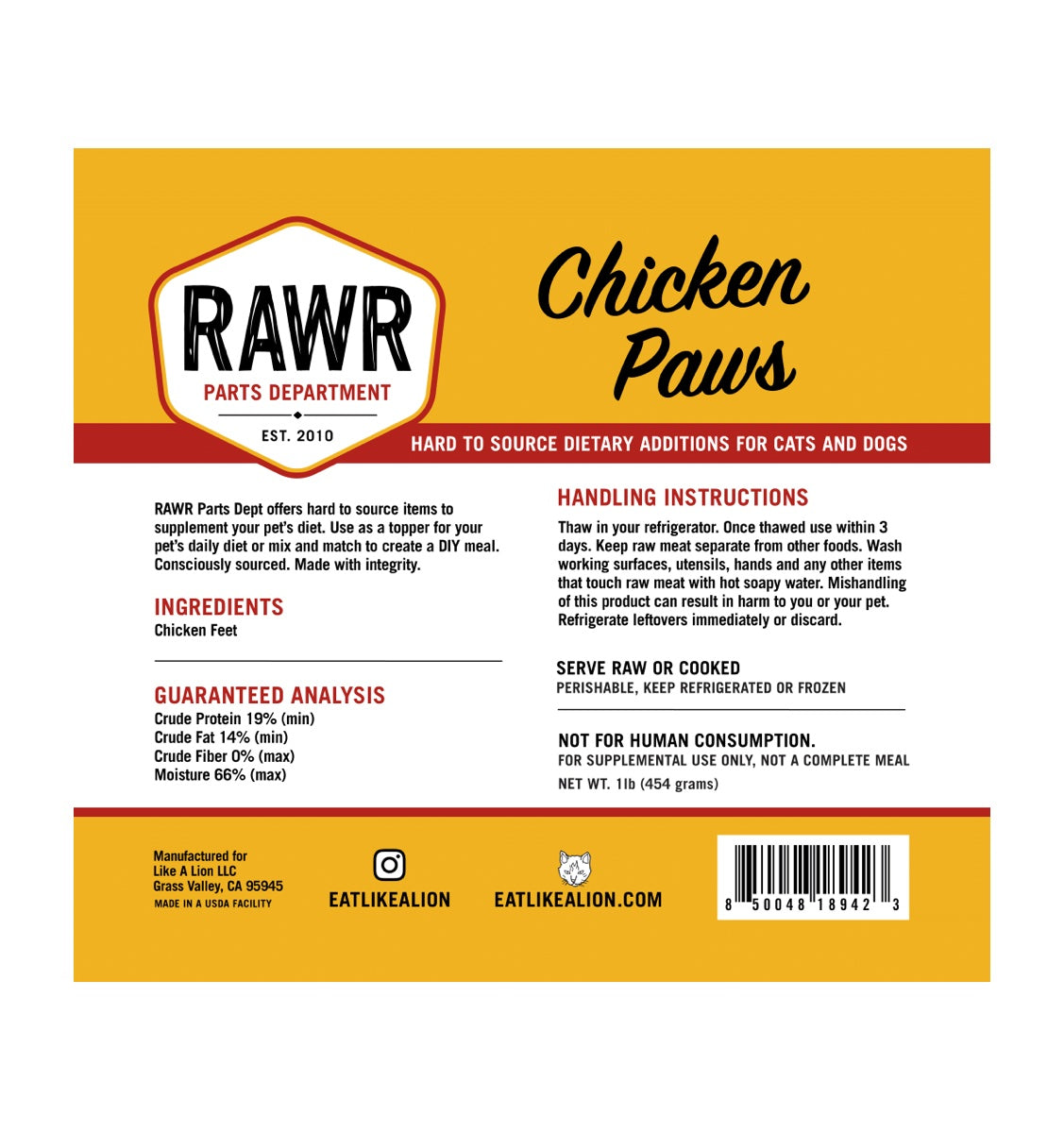 {"id":9946763493666,"title":"Rawr Frozen Raw Chicken Paws (Chicken Feet) 1lb","handle":"rawr-chicken-feet-1lb","description":"\u003cp\u003eRawr Frozen Raw Chicken Necks are a high-protein, nutrient-rich meal option for dogs and cats, providing a whole-pray, biologically appropriate diet. High in calcium \u0026amp; phosphorus, chicken necks support strong bones \u0026amp; teeth. \u003c\/p\u003e\n\u003cul\u003e\n\u003cli\u003eWhole-prey nutrition with muscle meat and bone\u003c\/li\u003e\n\u003cli\u003eGood source of protein, helps with muscle growth and repair\u003c\/li\u003e\n\u003cli\u003eRich in collagen: great for joint \u0026amp; skin health\u003cbr\u003e\n\u003c\/li\u003e\n\u003cli\u003eSingle-ingredient, raw, and free from artificial additives\u003c\/li\u003e\n\u003c\/ul\u003e\n\u003cp\u003e\u003cspan style=\"text-decoration: underline;\"\u003eIngredients\u003c\/span\u003e:\u003cbr\u003eChicken feets\u003c\/p\u003e","published_at":"2025-11-28T23:30:24-08:00","created_at":"2025-11-18T15:17:04-08:00","vendor":"Rawr","type":"Dog Treats","tags":["Bones \u0026 Chews","Cat","Dog","Food \u0026 Treats","Food \u0026 Treats cat","Foods \u0026 Treats cat","freezer","Frozen \u0026 Raw Cat","Frozen \u0026 Raw Food","Pickup Only"],"price":999,"price_min":999,"price_max":999,"available":true,"price_varies":false,"compare_at_price":null,"compare_at_price_min":0,"compare_at_price_max":0,"compare_at_price_varies":false,"variants":[{"id":50604993839394,"title":"Default Title","option1":"Default Title","option2":null,"option3":null,"sku":"210000012719","requires_shipping":true,"taxable":true,"featured_image":null,"available":true,"name":"Rawr Frozen Raw Chicken Paws (Chicken Feet) 1lb","public_title":null,"options":["Default Title"],"price":999,"weight":454,"compare_at_price":null,"inventory_quantity":2,"inventory_management":"shopify","inventory_policy":"deny","barcode":"850048189423","requires_selling_plan":false,"selling_plan_allocations":[]}],"images":["\/\/furlys.com\/cdn\/shop\/files\/Rawr_Chicken_Feet1.jpg?v=1764400926","\/\/furlys.com\/cdn\/shop\/files\/Rawr_Chicken_Feet_1fb78429-0b98-422f-88cc-700bbbf7f8af.png?v=1764400926"],"featured_image":"\/\/furlys.com\/cdn\/shop\/files\/Rawr_Chicken_Feet1.jpg?v=1764400926","options":["Title"],"media":[{"alt":null,"id":53617202757922,"position":1,"preview_image":{"aspect_ratio":0.939,"height":1200,"width":1127,"src":"\/\/furlys.com\/cdn\/shop\/files\/Rawr_Chicken_Feet1.jpg?v=1764400926"},"aspect_ratio":0.939,"height":1200,"media_type":"image","src":"\/\/furlys.com\/cdn\/shop\/files\/Rawr_Chicken_Feet1.jpg?v=1764400926","width":1127},{"alt":null,"id":53617202626850,"position":2,"preview_image":{"aspect_ratio":0.939,"height":1200,"width":1127,"src":"\/\/furlys.com\/cdn\/shop\/files\/Rawr_Chicken_Feet_1fb78429-0b98-422f-88cc-700bbbf7f8af.png?v=1764400926"},"aspect_ratio":0.939,"height":1200,"media_type":"image","src":"\/\/furlys.com\/cdn\/shop\/files\/Rawr_Chicken_Feet_1fb78429-0b98-422f-88cc-700bbbf7f8af.png?v=1764400926","width":1127}],"requires_selling_plan":false,"selling_plan_groups":[],"content":"\u003cp\u003eRawr Frozen Raw Chicken Necks are a high-protein, nutrient-rich meal option for dogs and cats, providing a whole-pray, biologically appropriate diet. High in calcium \u0026amp; phosphorus, chicken necks support strong bones \u0026amp; teeth. \u003c\/p\u003e\n\u003cul\u003e\n\u003cli\u003eWhole-prey nutrition with muscle meat and bone\u003c\/li\u003e\n\u003cli\u003eGood source of protein, helps with muscle growth and repair\u003c\/li\u003e\n\u003cli\u003eRich in collagen: great for joint \u0026amp; skin health\u003cbr\u003e\n\u003c\/li\u003e\n\u003cli\u003eSingle-ingredient, raw, and free from artificial additives\u003c\/li\u003e\n\u003c\/ul\u003e\n\u003cp\u003e\u003cspan style=\"text-decoration: underline;\"\u003eIngredients\u003c\/span\u003e:\u003cbr\u003eChicken feets\u003c\/p\u003e"}