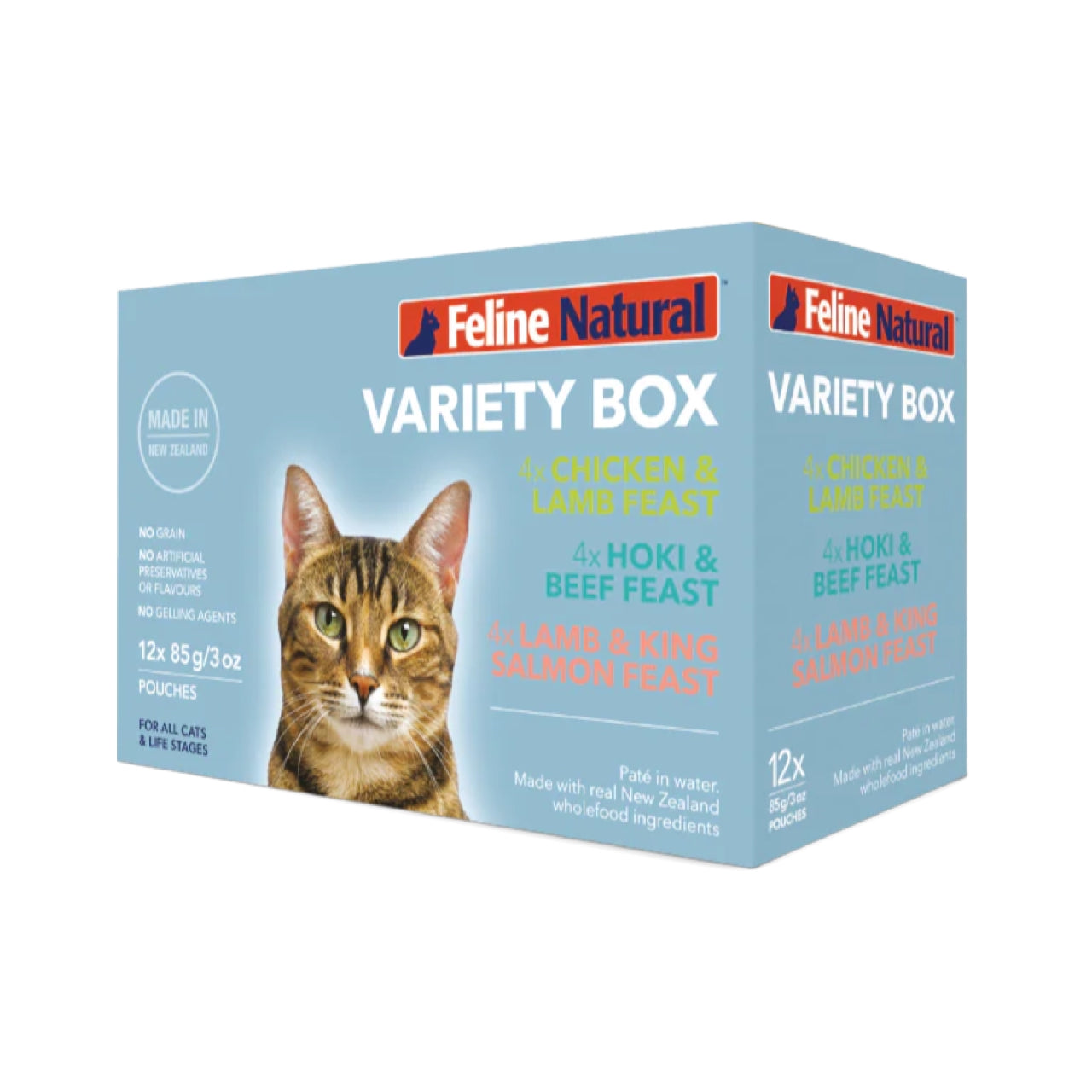 {"id":9962162454818,"title":"Feline Natural Variety Pack Grain-Free Wet Cat Food Pouches 3oz (12pk)","handle":"feline-natural-variety-pack-grain-free-wet-cat-food-pouches-3oz-12pk","description":"\u003csection class=\"styles_infoGroupSection__bFZf8\"\u003e\n\u003cp\u003eIndulge your kitty’s perfectly international palate! Feline Natural Grain-Free Pouches, Variety Box are crafted in New Zealand with wholefood, locally-sourced ingredients and selected vitamins and minerals. Each mess-free, single serve pouch is filled with a delicious, nutritious pate made from ingredients blended with water for added hydration. Variety pack comes with three flavors and provides the best natural nutrition for your cat. Made with cage-free chicken, grass-fed, free-range lamb and beef, and sustainably caught King Salmon and hoki, these whisker-licking pouches are sure to satisfy your cat’s cravings.\u003c\/p\u003e\n\u003cul\u003e\n\u003cli\u003eVariety box of grain-free at food pouches made in New Zealand that feature chicken, lamb, beef, salmon, and hoki\u003c\/li\u003e\n\u003cli\u003eFilled with meat and low carbs - these pouches offer a complete and balance diet for all your cat;'s life stages\u003c\/li\u003e\n\u003cli\u003ePouches come in a convenient, single serve portion\u003c\/li\u003e\n\u003cli\u003eNo gelling agents, binders, or gums\u003c\/li\u003e\n\u003c\/ul\u003e\n\u003cp\u003e\u003cspan style=\"text-decoration: underline;\"\u003eIncludes\u003c\/span\u003e:\u003cbr\u003e\u003ca href=\"https:\/\/furlys.com\/products\/feline-natural-chicken-lamb-cat-food-pouch-3oz-1?variant=49584073834786\" title=\"Feline Natural Chicken \u0026amp; Lamb Cat Food Pouch 3oz\"\u003eChicken \u0026amp; Lamb Feast 3oz\u003c\/a\u003e (4 pouches)\u003cbr\u003e\u003ca href=\"https:\/\/furlys.com\/products\/feline-natural-beef-hoki-cat-food-pouch-3oz-1?variant=49584041754914\" title=\"Feline Natural Beef \u0026amp; Hoki Cat Food Pouch 3oz\"\u003eHoki \u0026amp; Beef Feast 3oz\u003c\/a\u003e (4 pouches)\u003cbr\u003e\u003ca href=\"https:\/\/furlys.com\/products\/feline-natural-lamb-king-salmon-cat-food-pouch-3oz-1?_pos=4\u0026amp;_sid=5220915aa\u0026amp;_ss=r\" title=\"Feline Natural Lamb \u0026amp; King Salmon Cat Food Pouch 3oz\"\u003eLamb \u0026amp; King Salmon 3oz\u003c\/a\u003e (4 pouches)\u003c\/p\u003e\n\u003c\/section\u003e","published_at":"2025-12-08T23:10:31-08:00","created_at":"2025-12-08T23:10:28-08:00","vendor":"Feline Natural","type":"Cat Food","tags":["Canned Food cat","Cat","Cat food","cat wet","Food \u0026 Treats cat","Food cat","Foods \u0026 Treats cat","Grain Free cat","Natural cat","Wet Food cat"],"price":3399,"price_min":3399,"price_max":3399,"available":true,"price_varies":false,"compare_at_price":null,"compare_at_price_min":0,"compare_at_price_max":0,"compare_at_price_varies":false,"variants":[{"id":50671800844578,"title":"Default Title","option1":"Default Title","option2":null,"option3":null,"sku":"210000011757","requires_shipping":true,"taxable":true,"featured_image":null,"available":true,"name":"Feline Natural Variety Pack Grain-Free Wet Cat Food Pouches 3oz (12pk)","public_title":null,"options":["Default Title"],"price":3399,"weight":1021,"compare_at_price":null,"inventory_quantity":1,"inventory_management":"shopify","inventory_policy":"deny","barcode":"9421905950367","requires_selling_plan":false,"selling_plan_allocations":[{"price_adjustments":[{"position":1,"price":3229}],"price":3229,"compare_at_price":3399,"per_delivery_price":3229,"selling_plan_id":9646768418,"selling_plan_group_id":"be5676770f7a2a402f39044871b9ae3b86c22e15"},{"price_adjustments":[{"position":1,"price":3229}],"price":3229,"compare_at_price":3399,"per_delivery_price":3229,"selling_plan_id":9646801186,"selling_plan_group_id":"be5676770f7a2a402f39044871b9ae3b86c22e15"},{"price_adjustments":[{"position":1,"price":3229}],"price":3229,"compare_at_price":3399,"per_delivery_price":3229,"selling_plan_id":9646833954,"selling_plan_group_id":"be5676770f7a2a402f39044871b9ae3b86c22e15"},{"price_adjustments":[{"position":1,"price":3229}],"price":3229,"compare_at_price":3399,"per_delivery_price":3229,"selling_plan_id":9646866722,"selling_plan_group_id":"be5676770f7a2a402f39044871b9ae3b86c22e15"},{"price_adjustments":[{"position":1,"price":3229}],"price":3229,"compare_at_price":3399,"per_delivery_price":3229,"selling_plan_id":9646899490,"selling_plan_group_id":"be5676770f7a2a402f39044871b9ae3b86c22e15"},{"price_adjustments":[{"position":1,"price":3229}],"price":3229,"compare_at_price":3399,"per_delivery_price":3229,"selling_plan_id":9646932258,"selling_plan_group_id":"be5676770f7a2a402f39044871b9ae3b86c22e15"},{"price_adjustments":[{"position":1,"price":3229}],"price":3229,"compare_at_price":3399,"per_delivery_price":3229,"selling_plan_id":9646965026,"selling_plan_group_id":"be5676770f7a2a402f39044871b9ae3b86c22e15"},{"price_adjustments":[{"position":1,"price":3229}],"price":3229,"compare_at_price":3399,"per_delivery_price":3229,"selling_plan_id":9646997794,"selling_plan_group_id":"be5676770f7a2a402f39044871b9ae3b86c22e15"},{"price_adjustments":[{"position":1,"price":3229}],"price":3229,"compare_at_price":3399,"per_delivery_price":3229,"selling_plan_id":9647030562,"selling_plan_group_id":"be5676770f7a2a402f39044871b9ae3b86c22e15"},{"price_adjustments":[{"position":1,"price":3229}],"price":3229,"compare_at_price":3399,"per_delivery_price":3229,"selling_plan_id":9647063330,"selling_plan_group_id":"be5676770f7a2a402f39044871b9ae3b86c22e15"},{"price_adjustments":[{"position":1,"price":3229}],"price":3229,"compare_at_price":3399,"per_delivery_price":3229,"selling_plan_id":9647096098,"selling_plan_group_id":"be5676770f7a2a402f39044871b9ae3b86c22e15"},{"price_adjustments":[{"position":1,"price":3229}],"price":3229,"compare_at_price":3399,"per_delivery_price":3229,"selling_plan_id":9647128866,"selling_plan_group_id":"be5676770f7a2a402f39044871b9ae3b86c22e15"},{"price_adjustments":[{"position":1,"price":3229}],"price":3229,"compare_at_price":3399